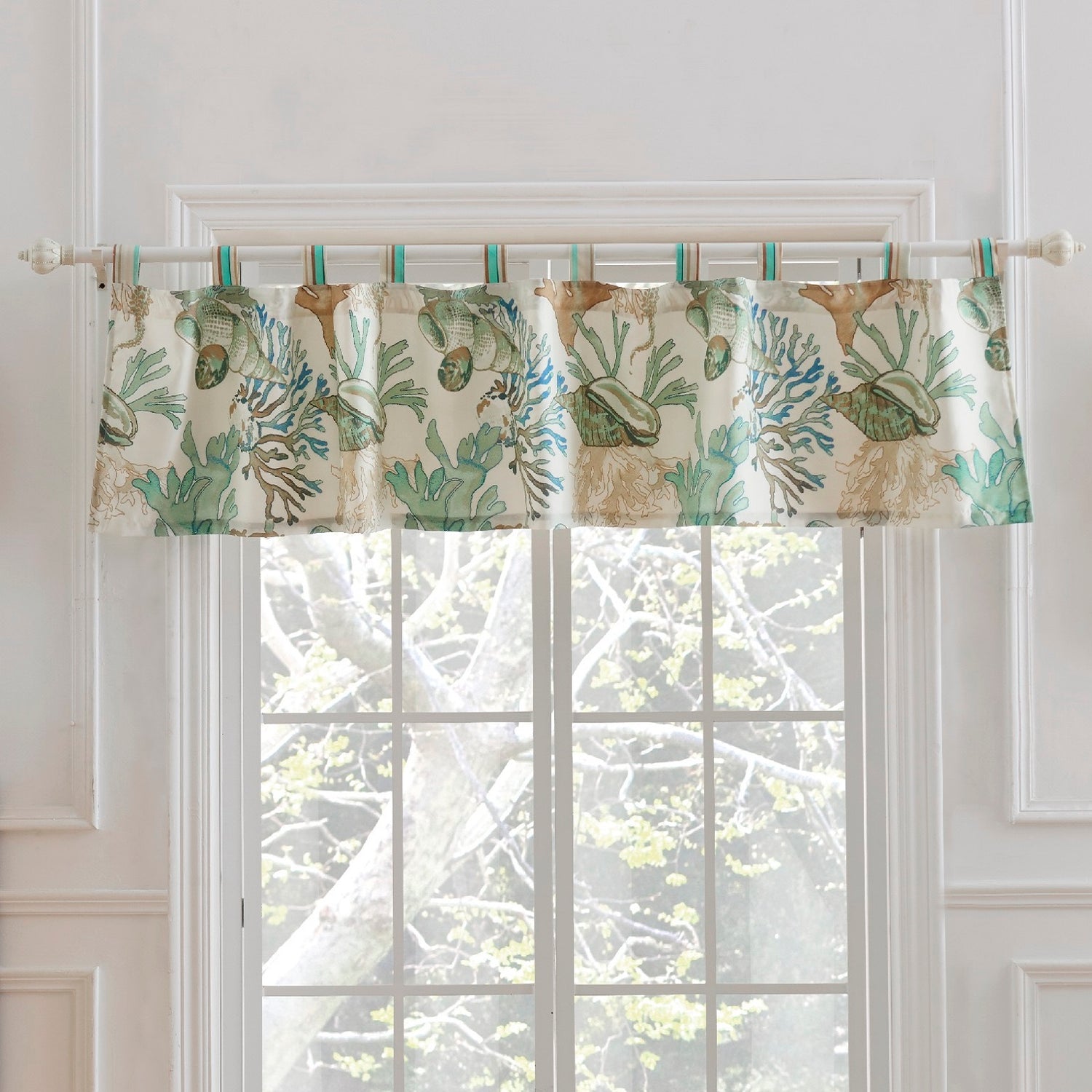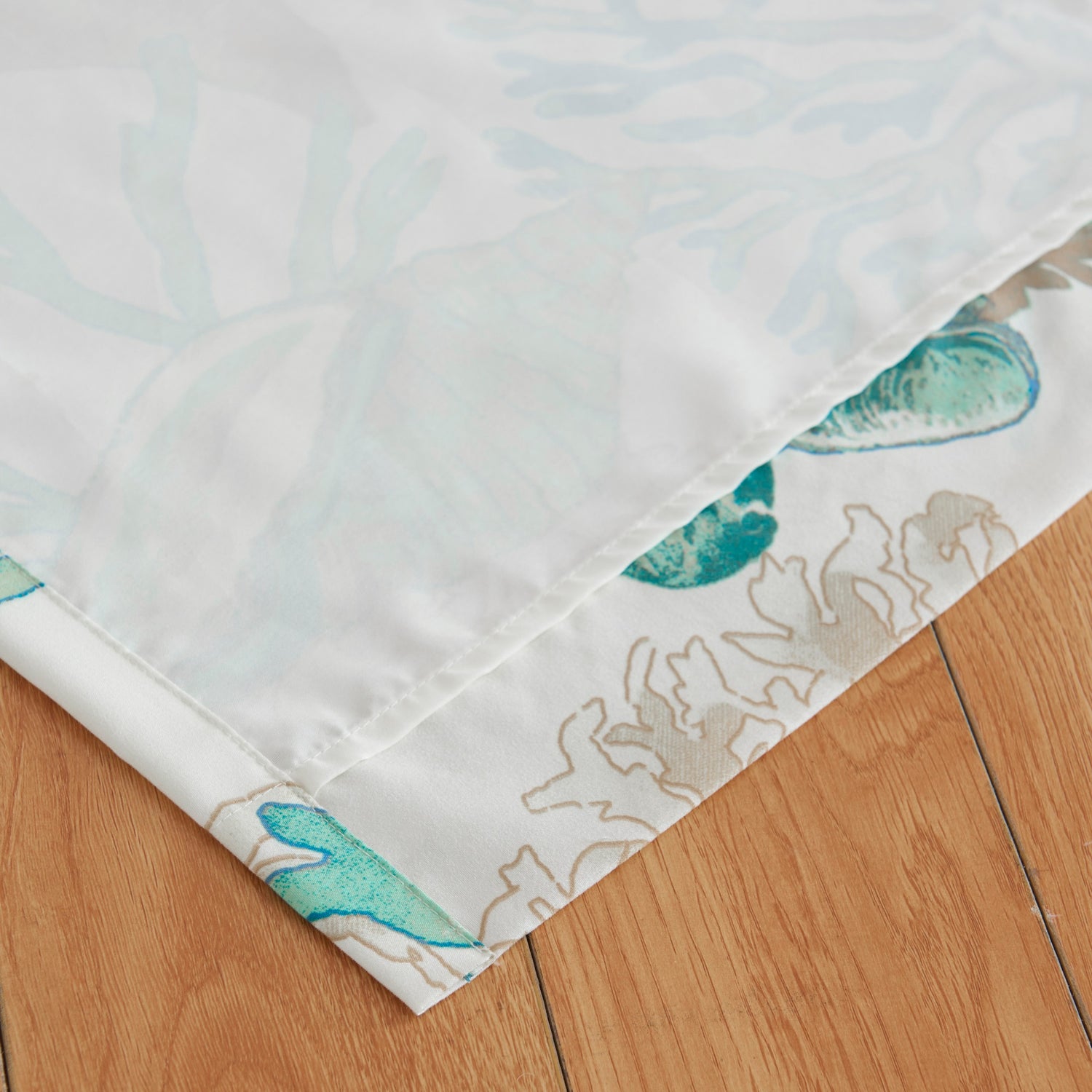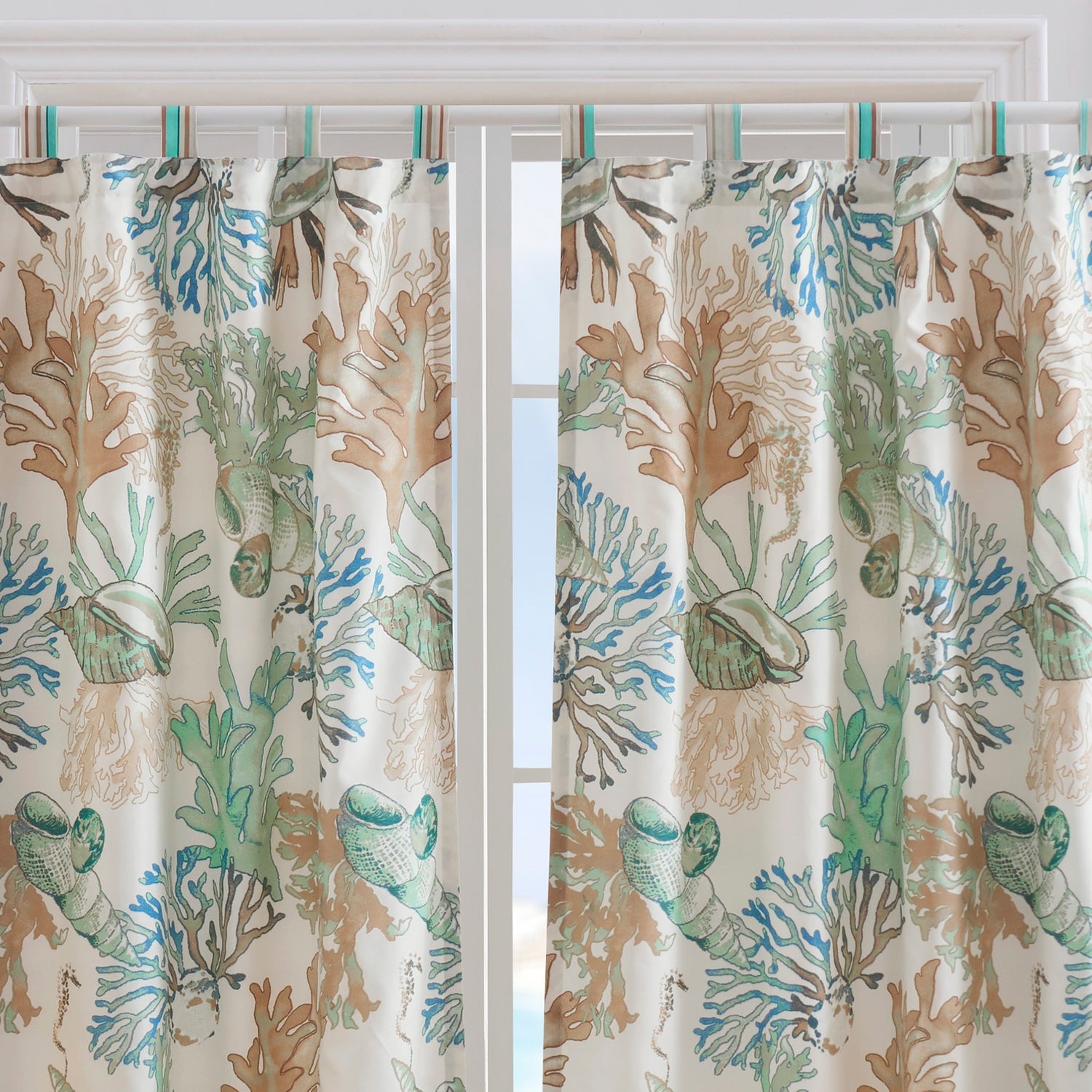 Drifting seahorses, corals and seashells bathed in golden beams create an ocean botanical sanctuary in your room. Shimmering in paradise, dreams of Atlantis inspired this coastal window treatment.
