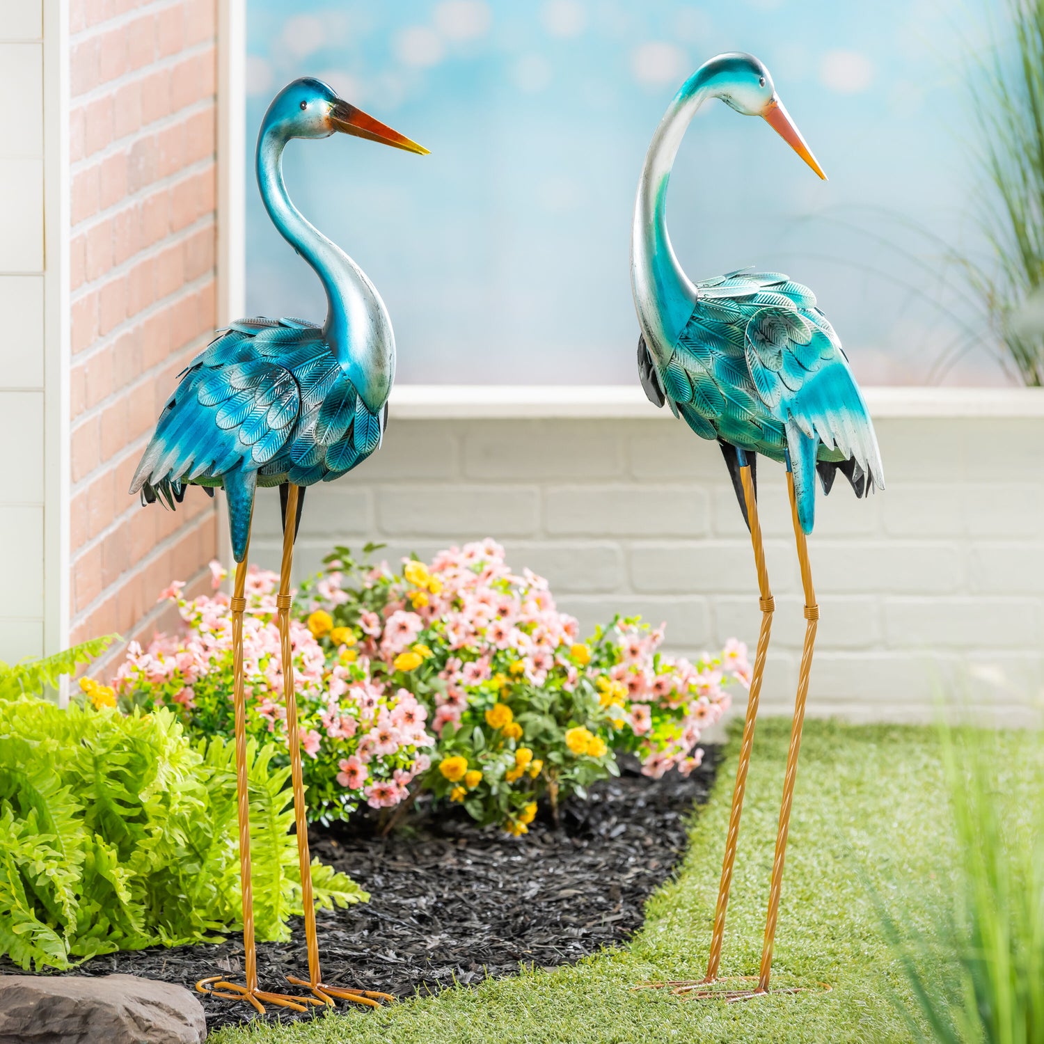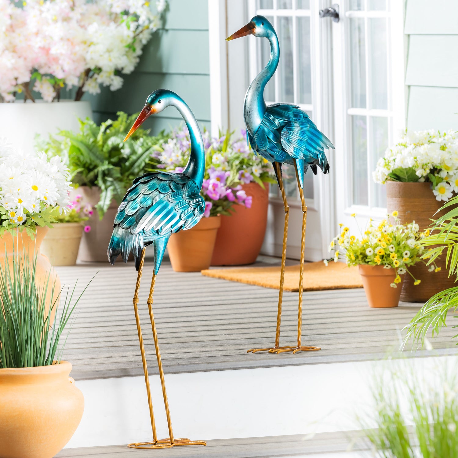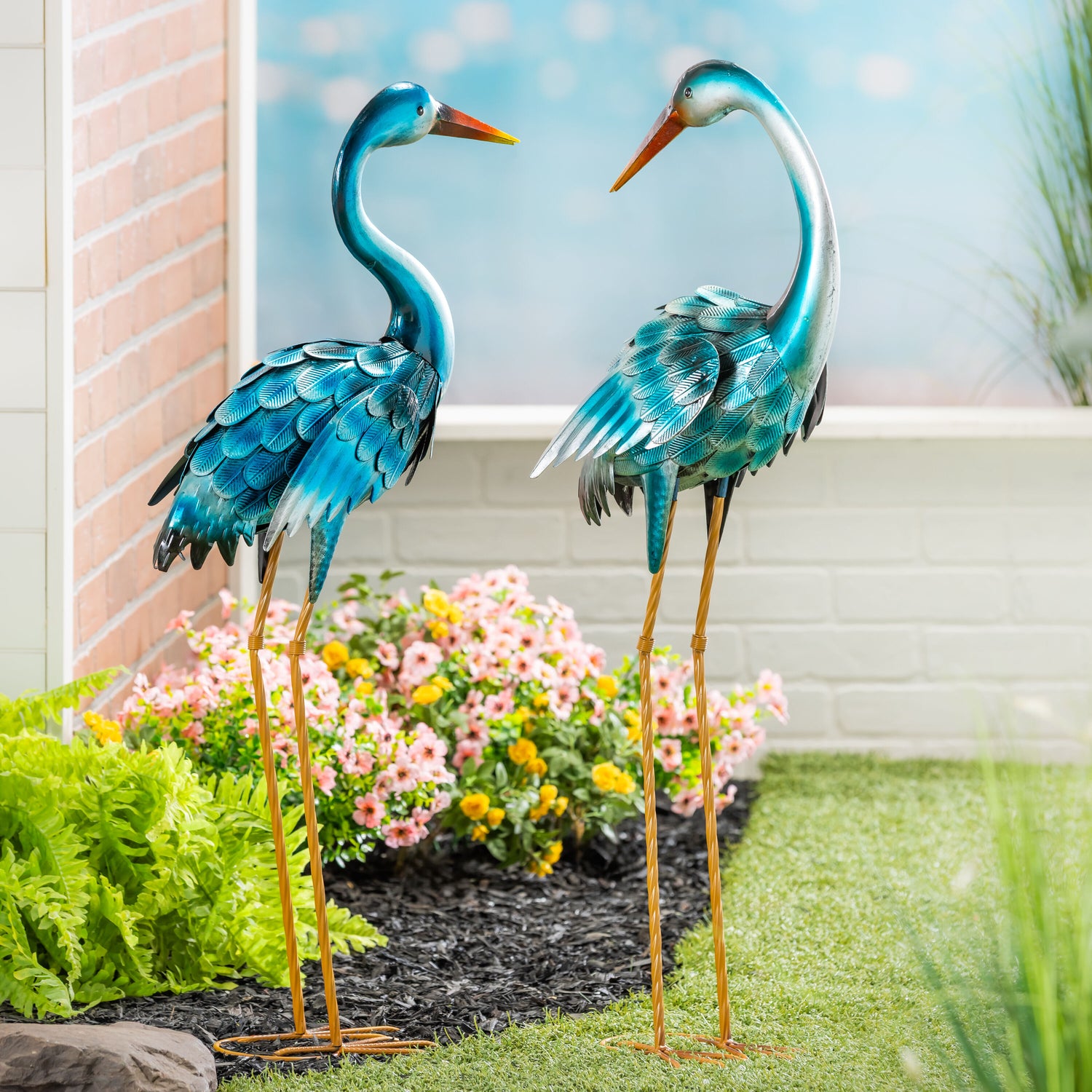 - Set of 2 metal herons with realistic posture and textured feathers