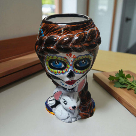 Day of the Dead Lady & Bunny Planter