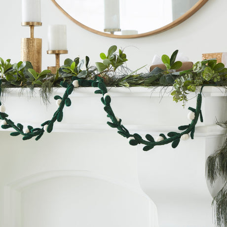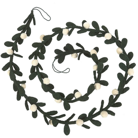 Handmade Christmas Garland and Bunting - Cream Velvet Balls and Felt Mistletoe - 6' Arcadia Home