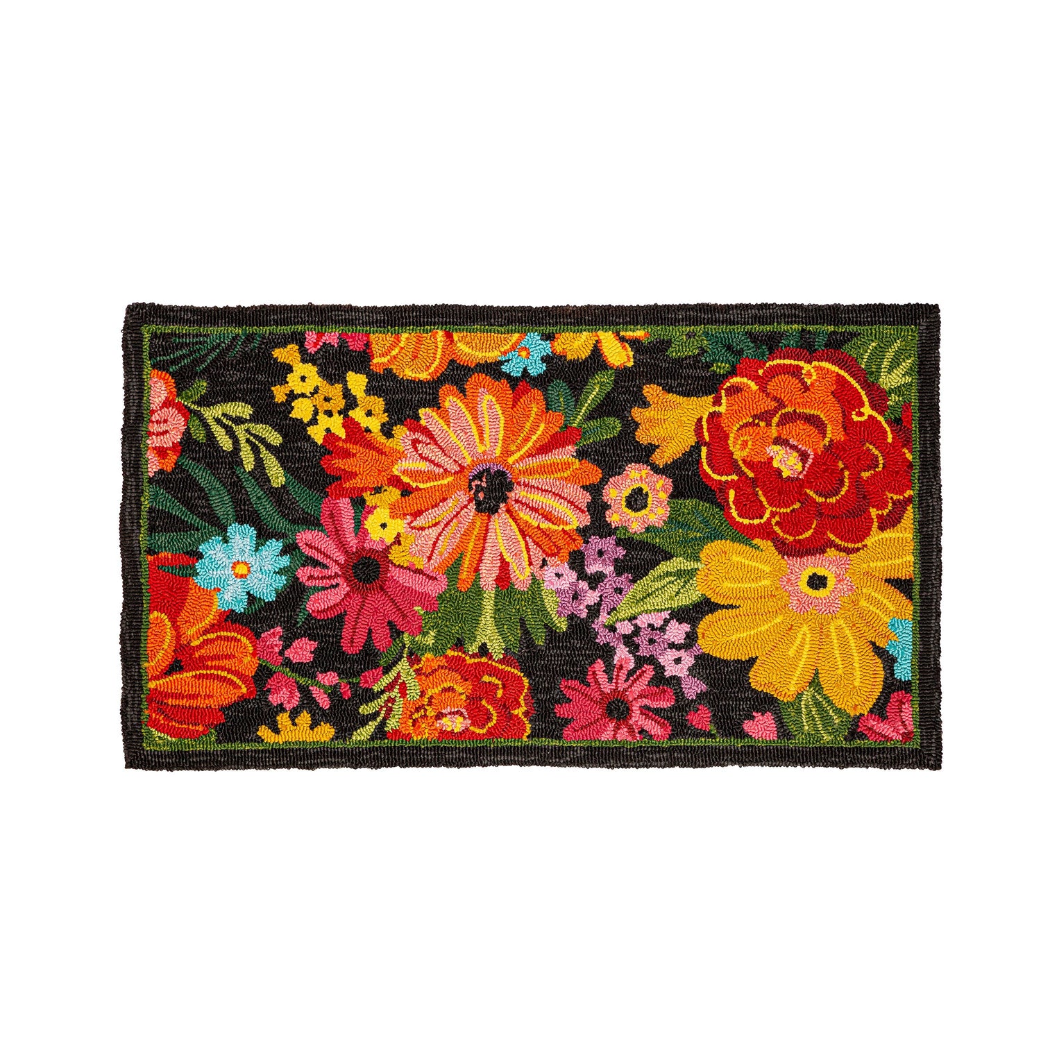 Rug features a hooked face with a poly-web canvas backing. Shake out or vacuum (do not use beater attachment) as needed. Spot clean with mild soap/water solution or hose down, then air dry. May also be machine washed. Imported.