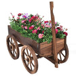 Outdoor Garden Fir Wood Barrel Planter Wagon on Wooden Wheels