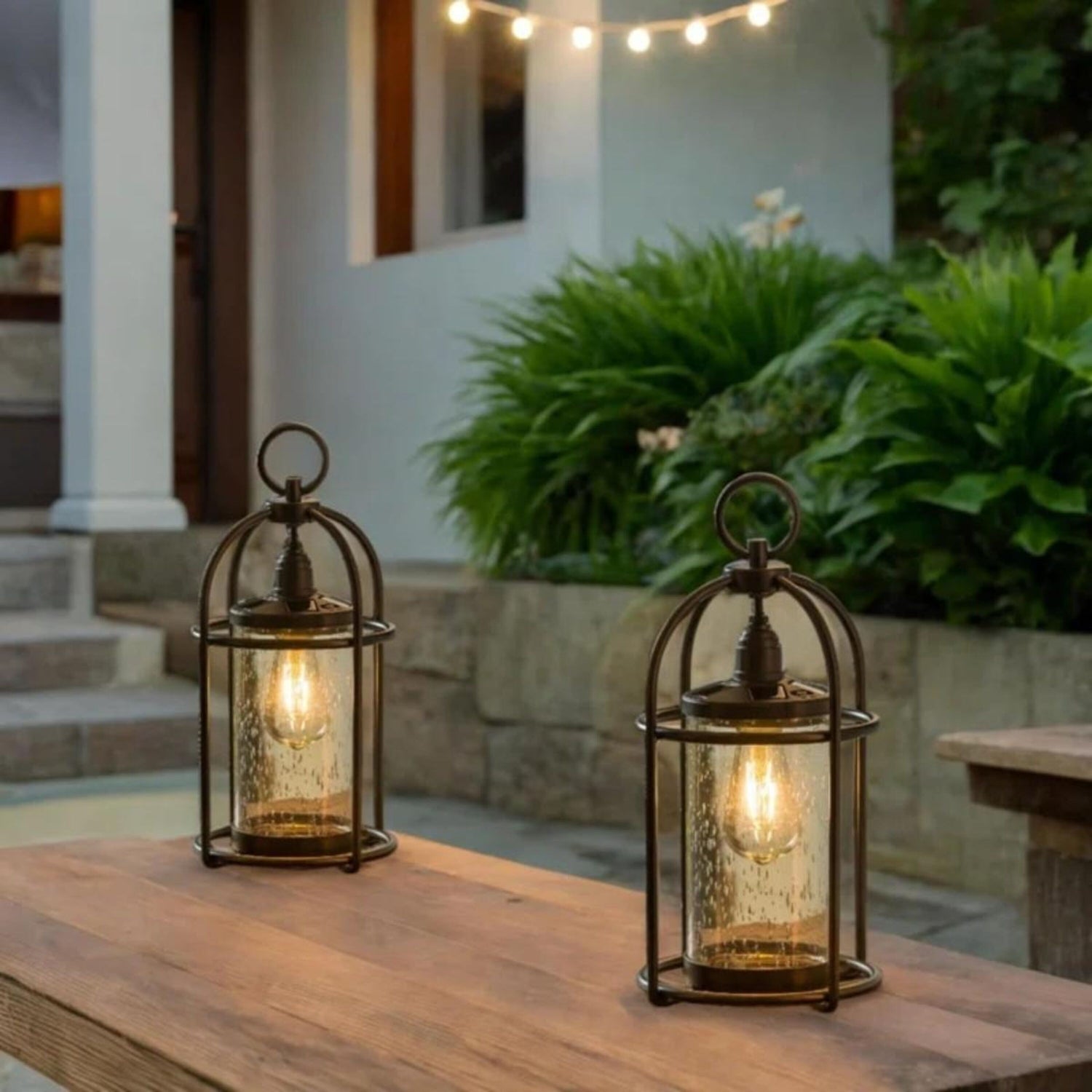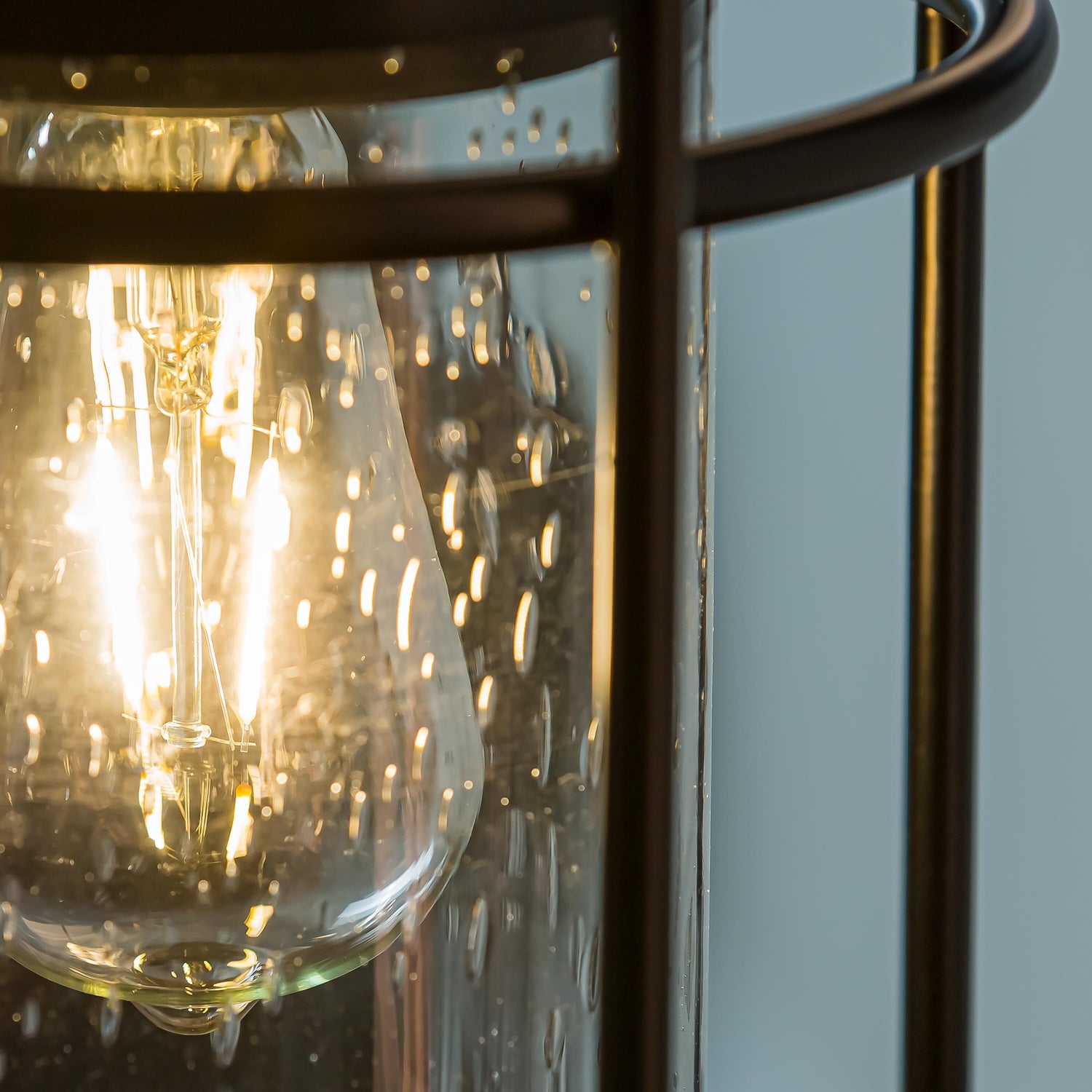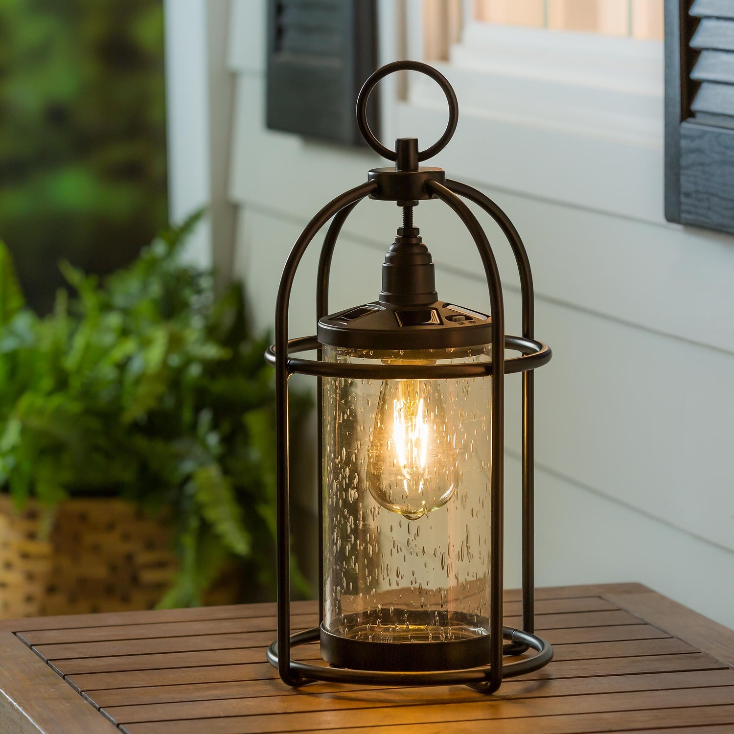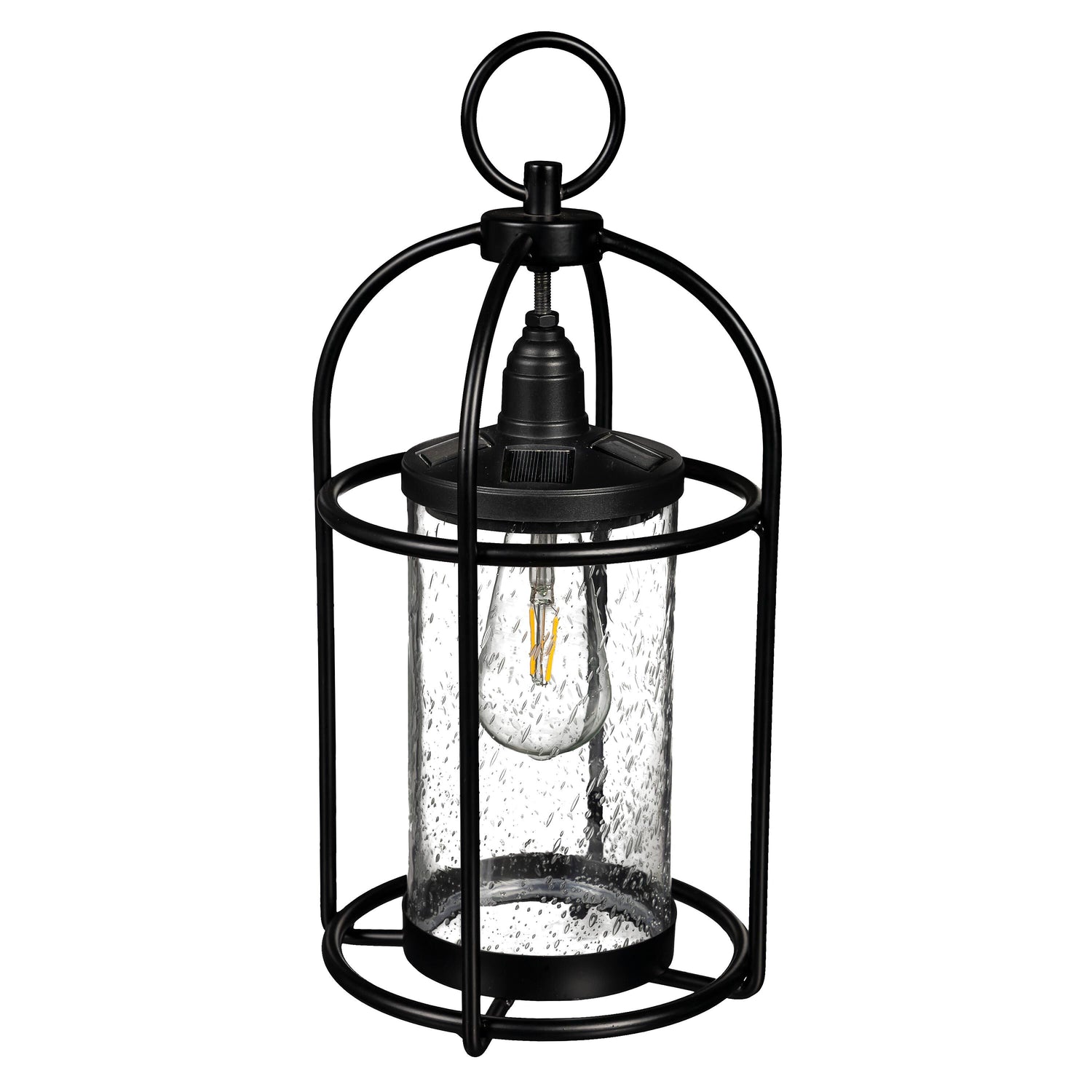 Solar Metal and Bubble Glass Edison Lantern