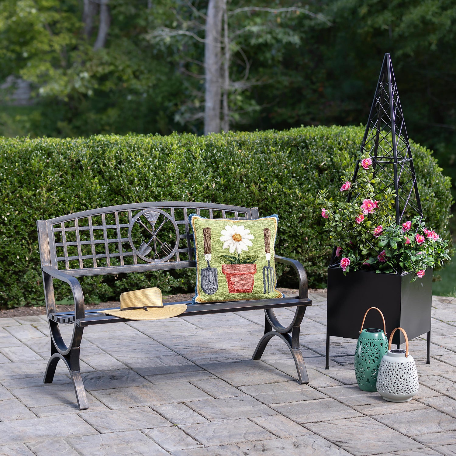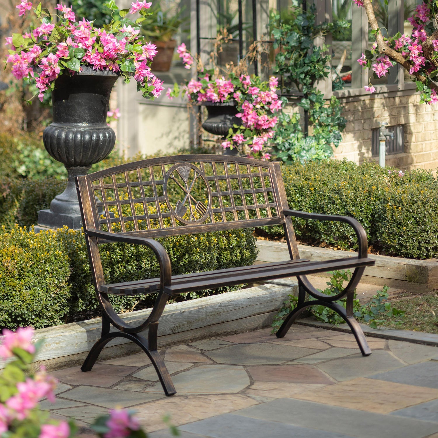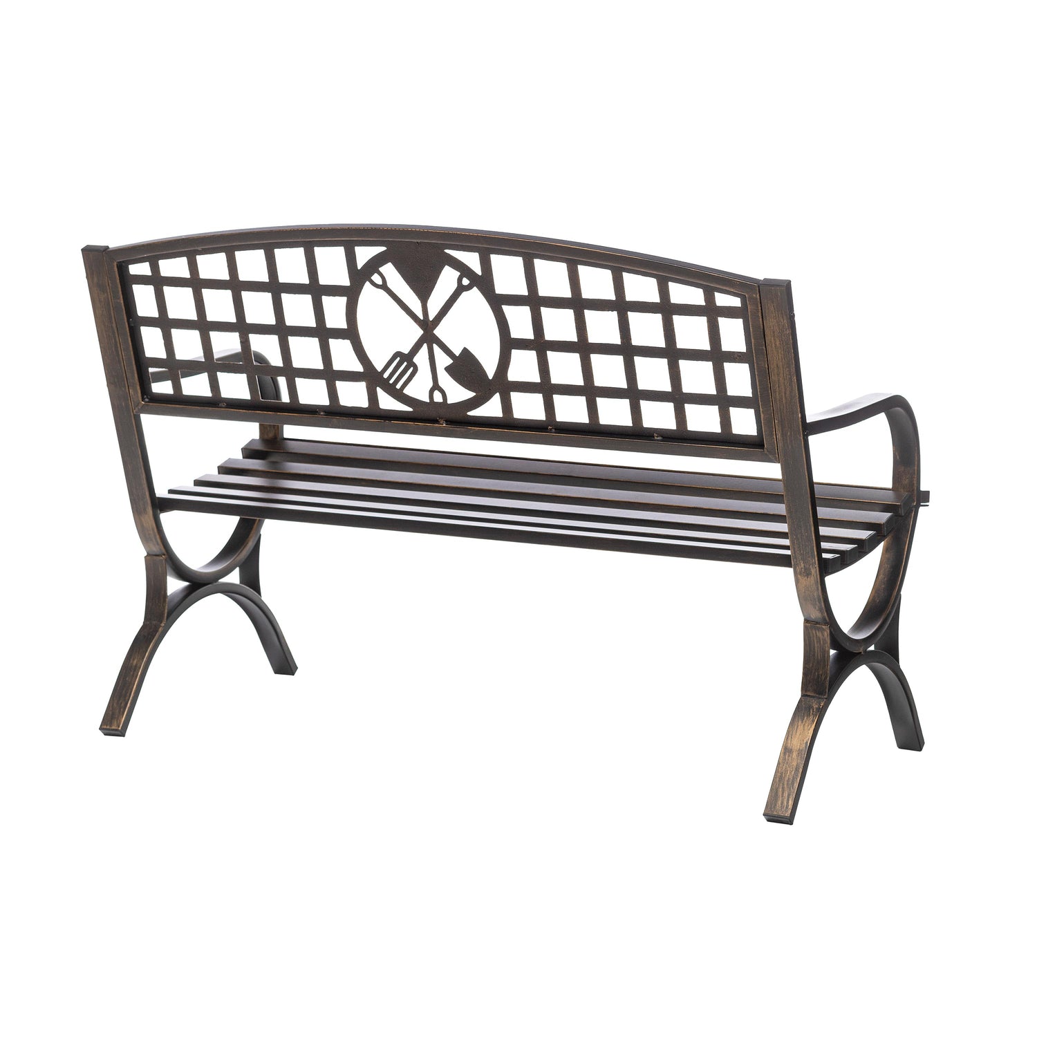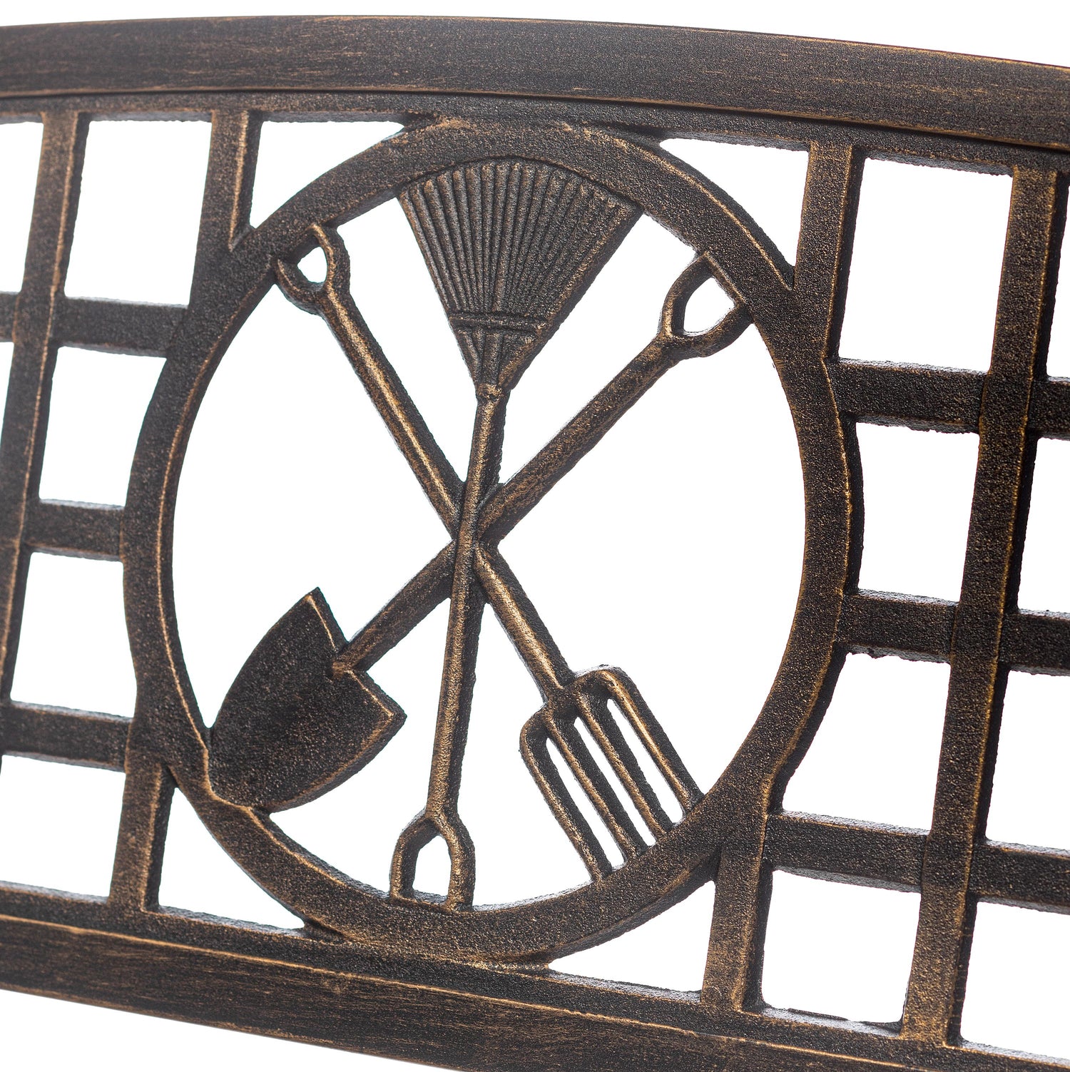 Our Garden Tools Metal Garden Bench features a charming garden tool motif, making it the ideal seating for a gardener or for placement under a tree, along a path, among flowers and more.