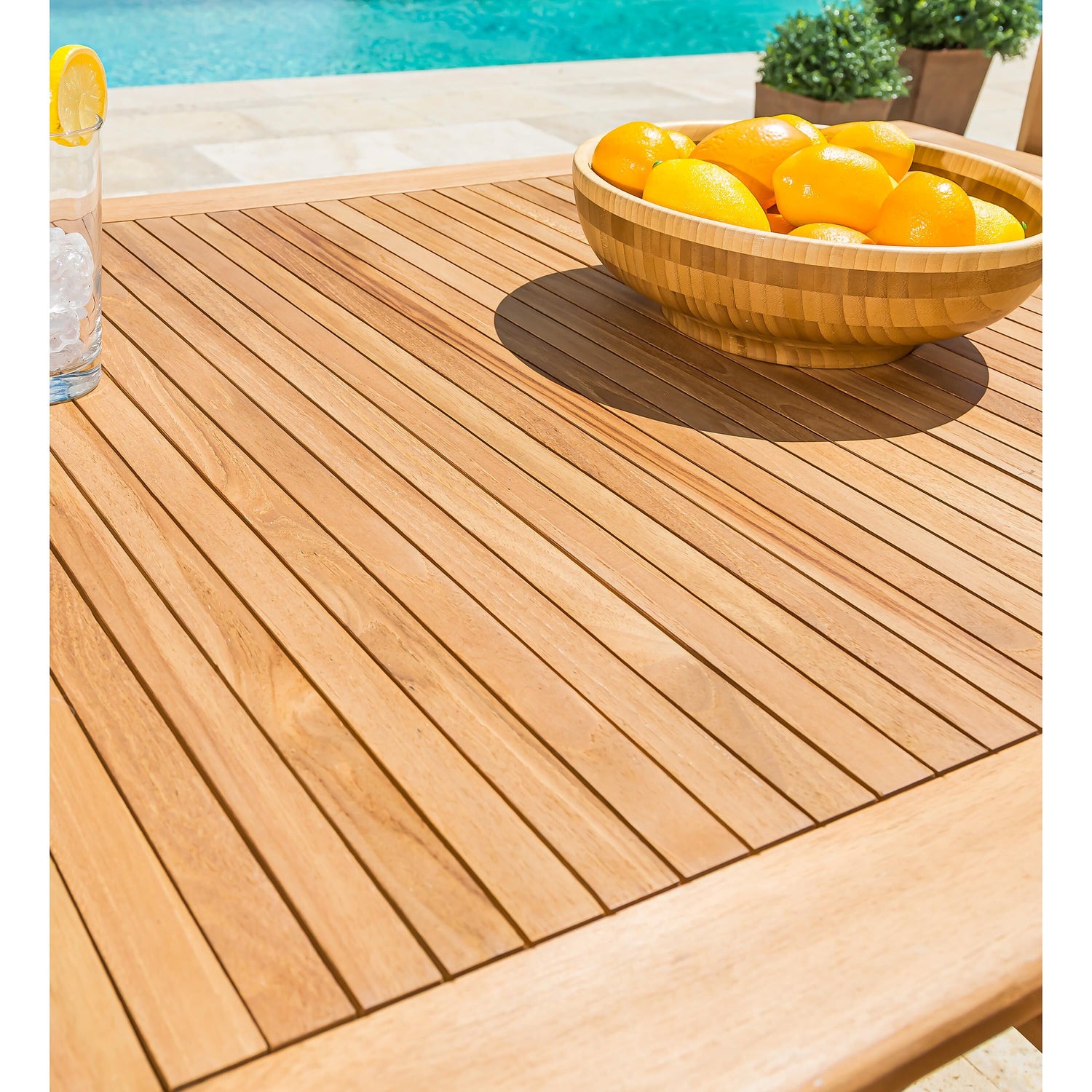 Teak wood is so strong and durable, that even without varnishing it will last many years. It's naturally outdoor-safe, weather-, pest-, mildew-, and stain-resistant which makes teak wood one of the most sought after wood for gorgeous, long-lasting outdoor furniture.