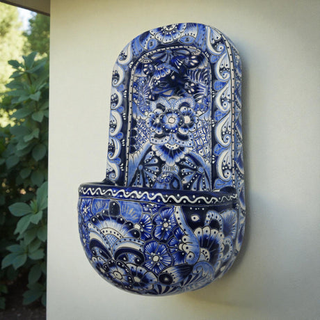 Blue & White Talavera Wall Fountain | Handcrafted Mexican Ceramic