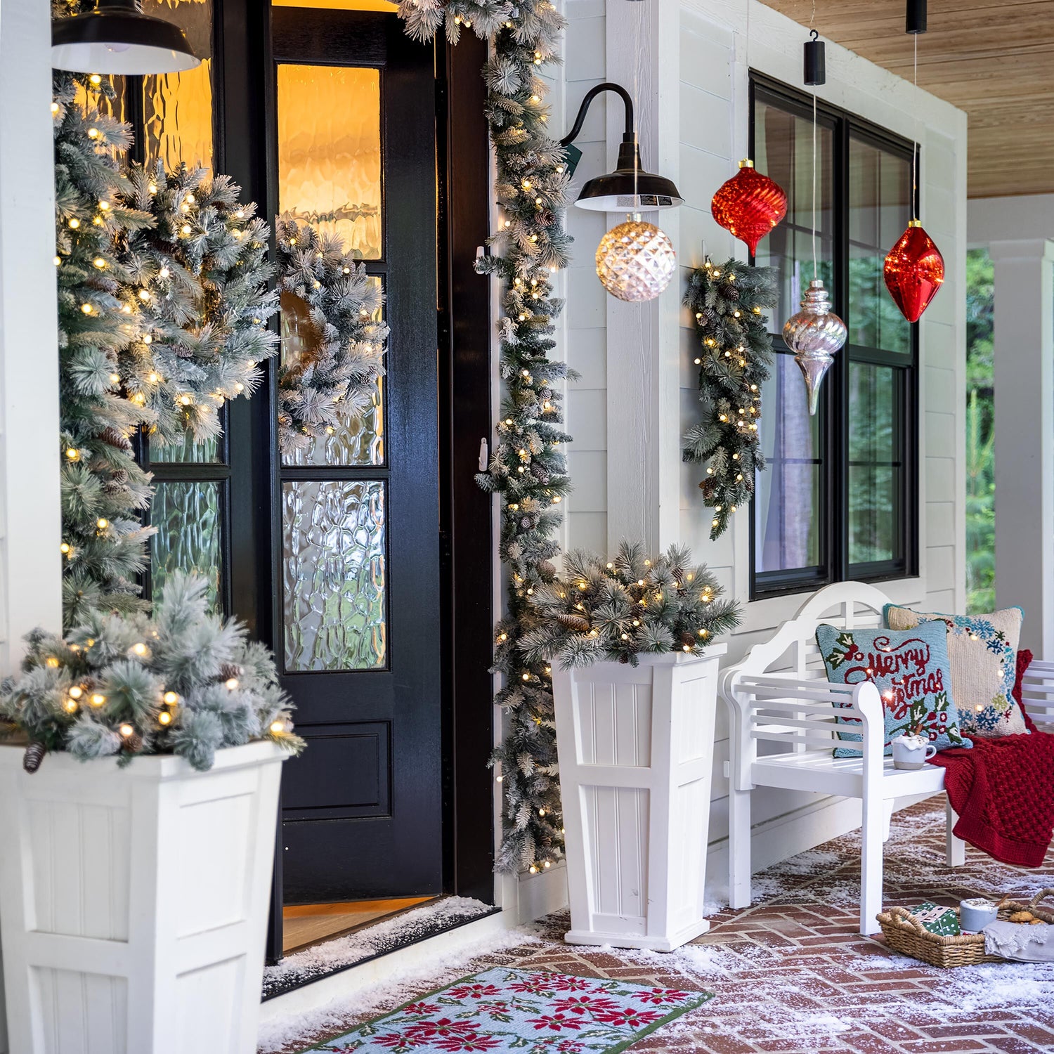This rug will add instant holiday style to your front door, porch, mudroom or kitchen. Polypropylene rug is easy-care: vacuum, spot clean or hose down, then air dry completely. Imported.