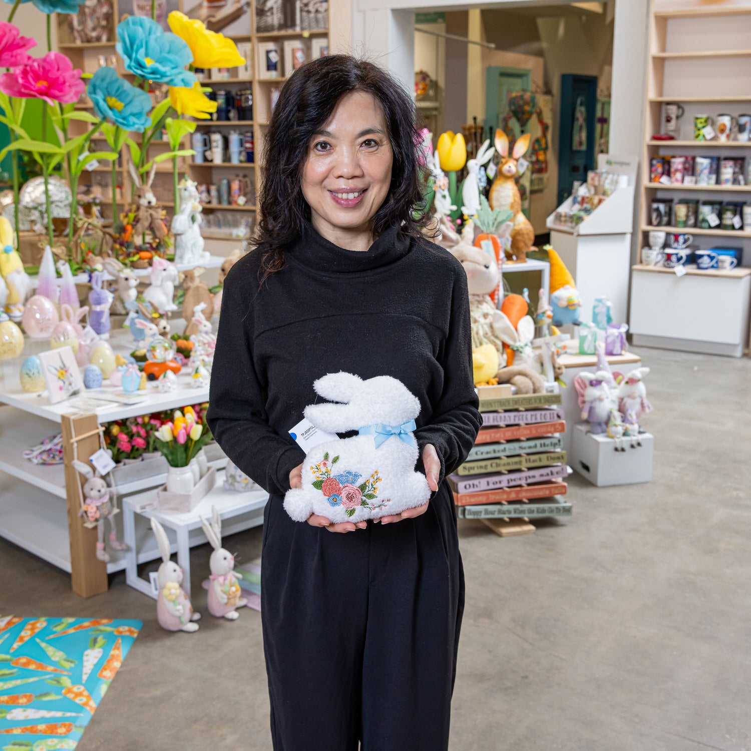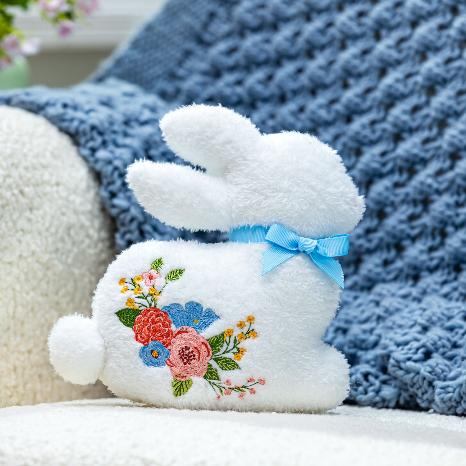 Bunny Blooms Throw Pillow Shaped Floral Bunny, 8.25"H
