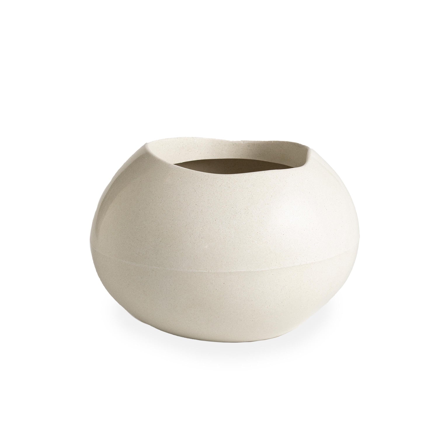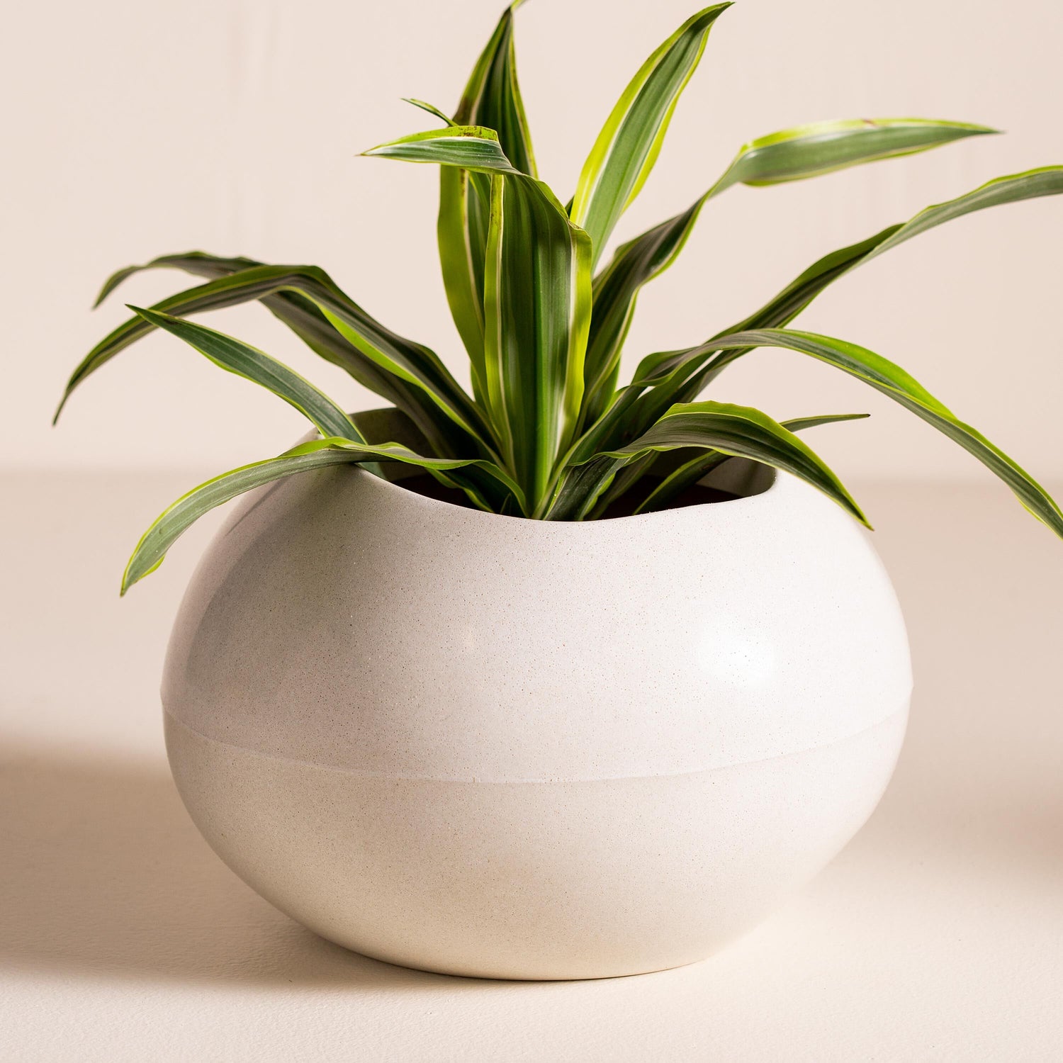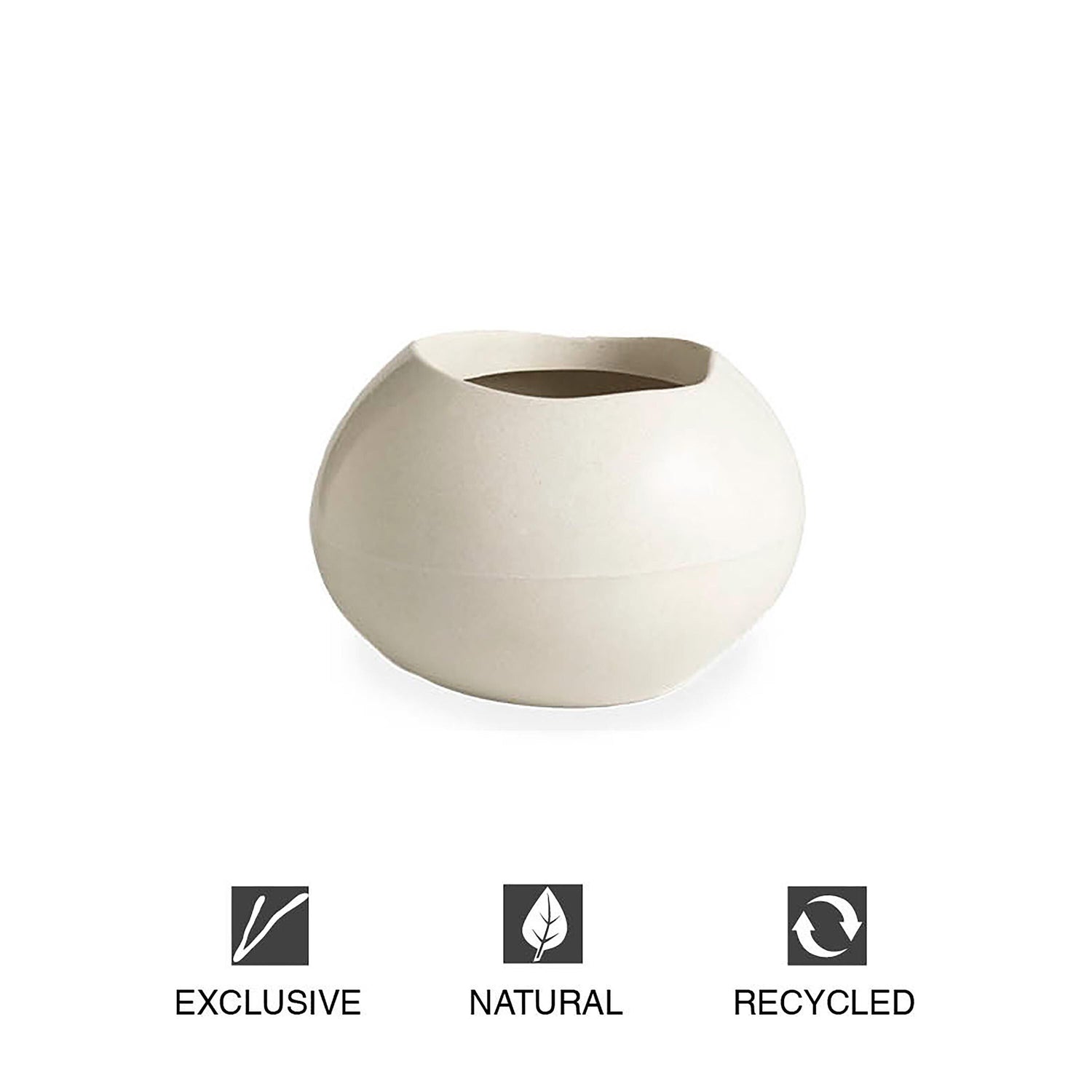 These eco-friendly planters are created from sugar cane-derived plastic. The first of their kind, Brazilian artisans retro mold these unique planters into organic shapes inspired by the look of smooth river stones for an all-weather planter that is 100% recyclable. These planters are produced with 50% sustainable material called "I'm Green" made from sugarcane ethylene. The remaining 50% of plastic is a post-consumption recycled material.