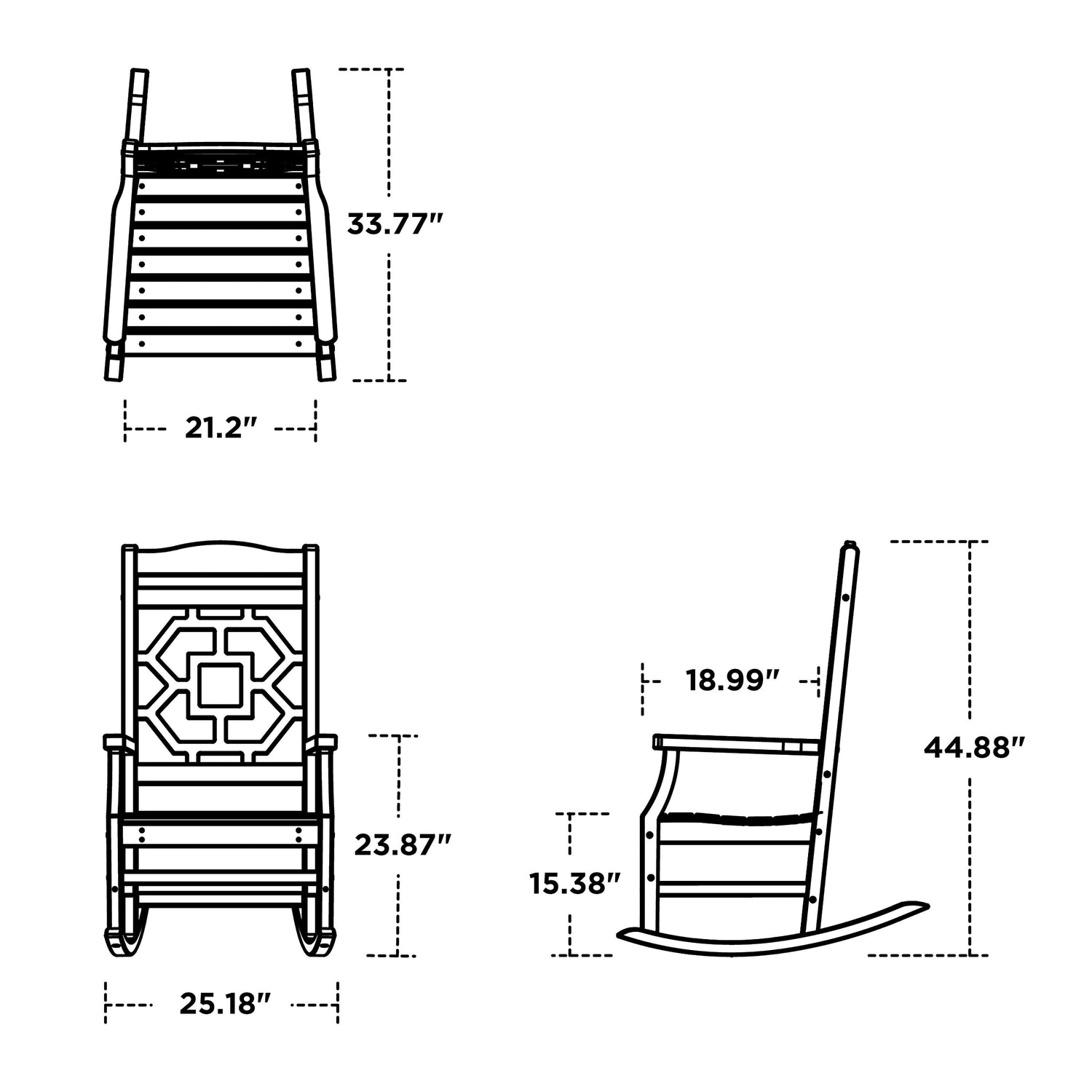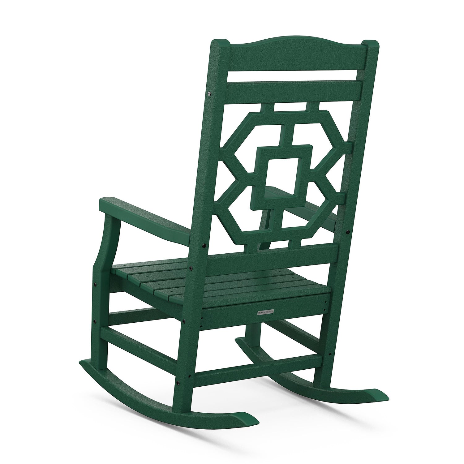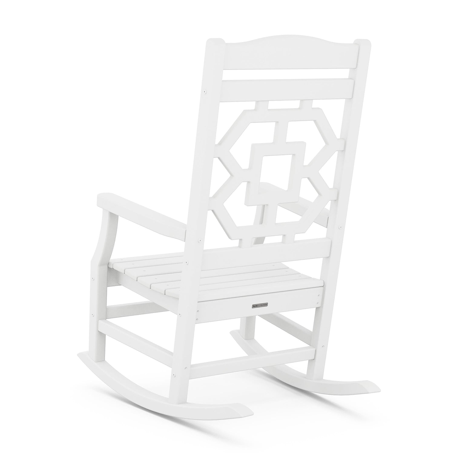 Our USA-made POLYWOOD® Furniture is the epitome of timeless outdoor elegance fused with unparalleled durability. The Chinoiserie Rocking Chair features classic styling, gentle motion, and an embracing silhouette that puts relaxation on repeat; also note its graceful lines and intricate latticework.