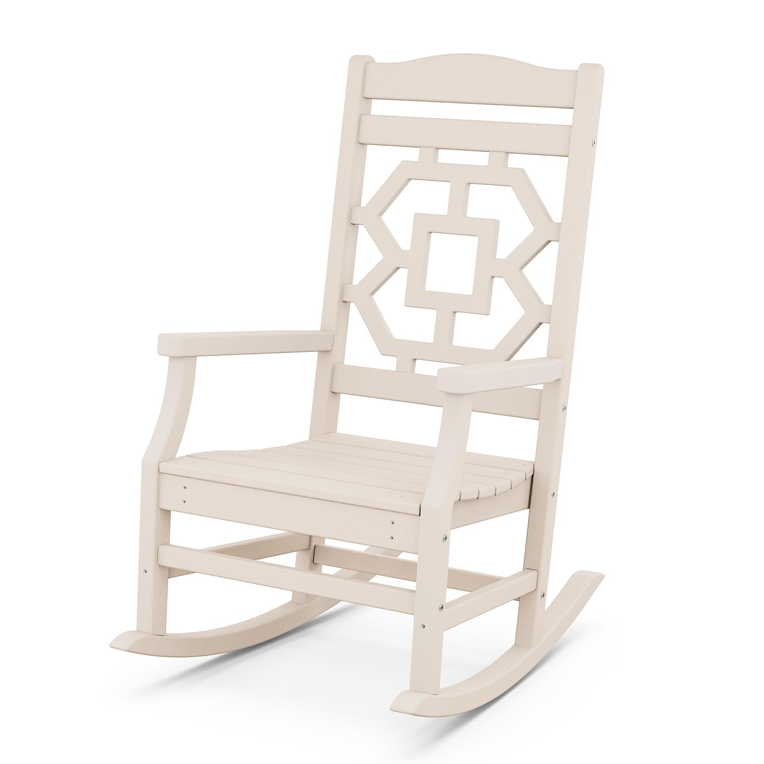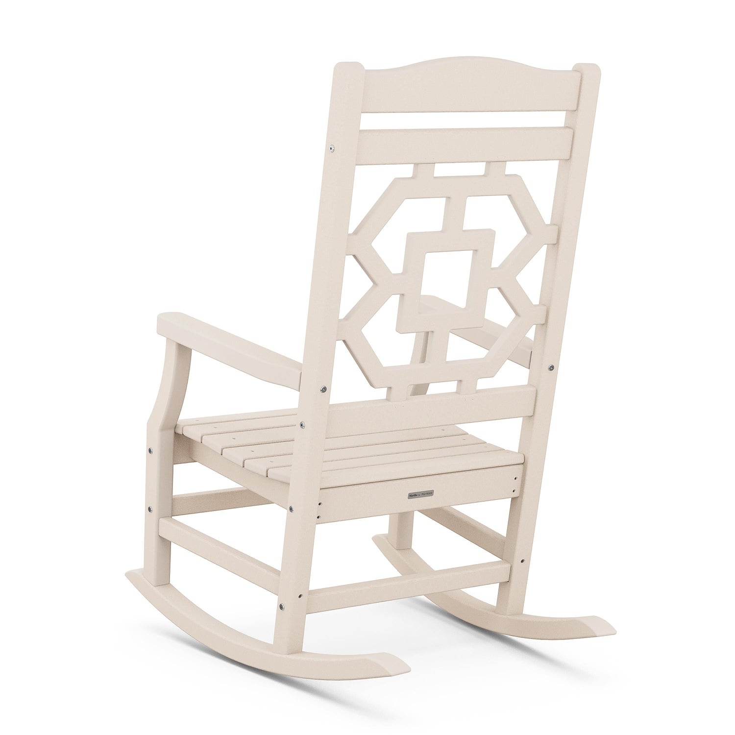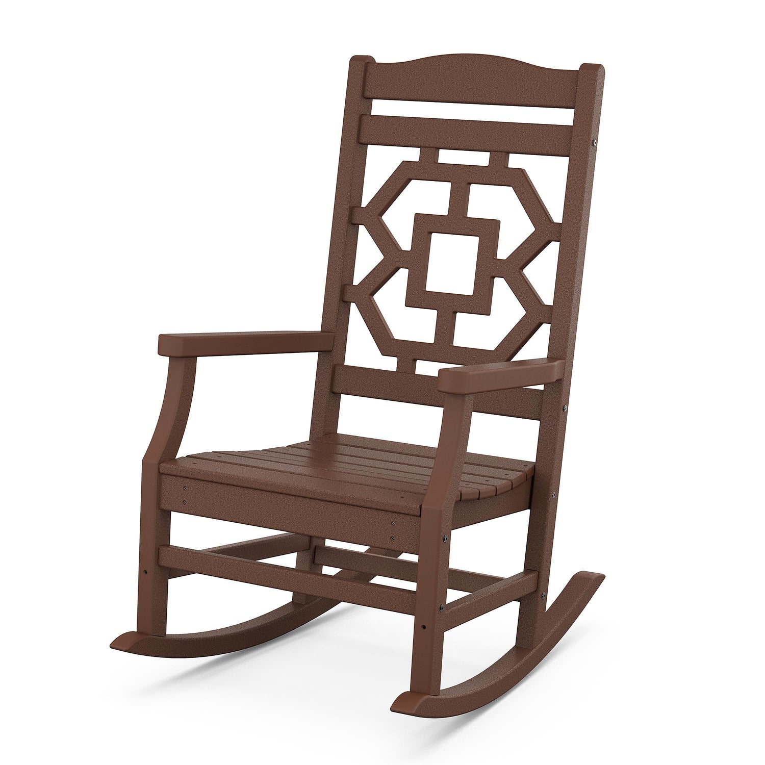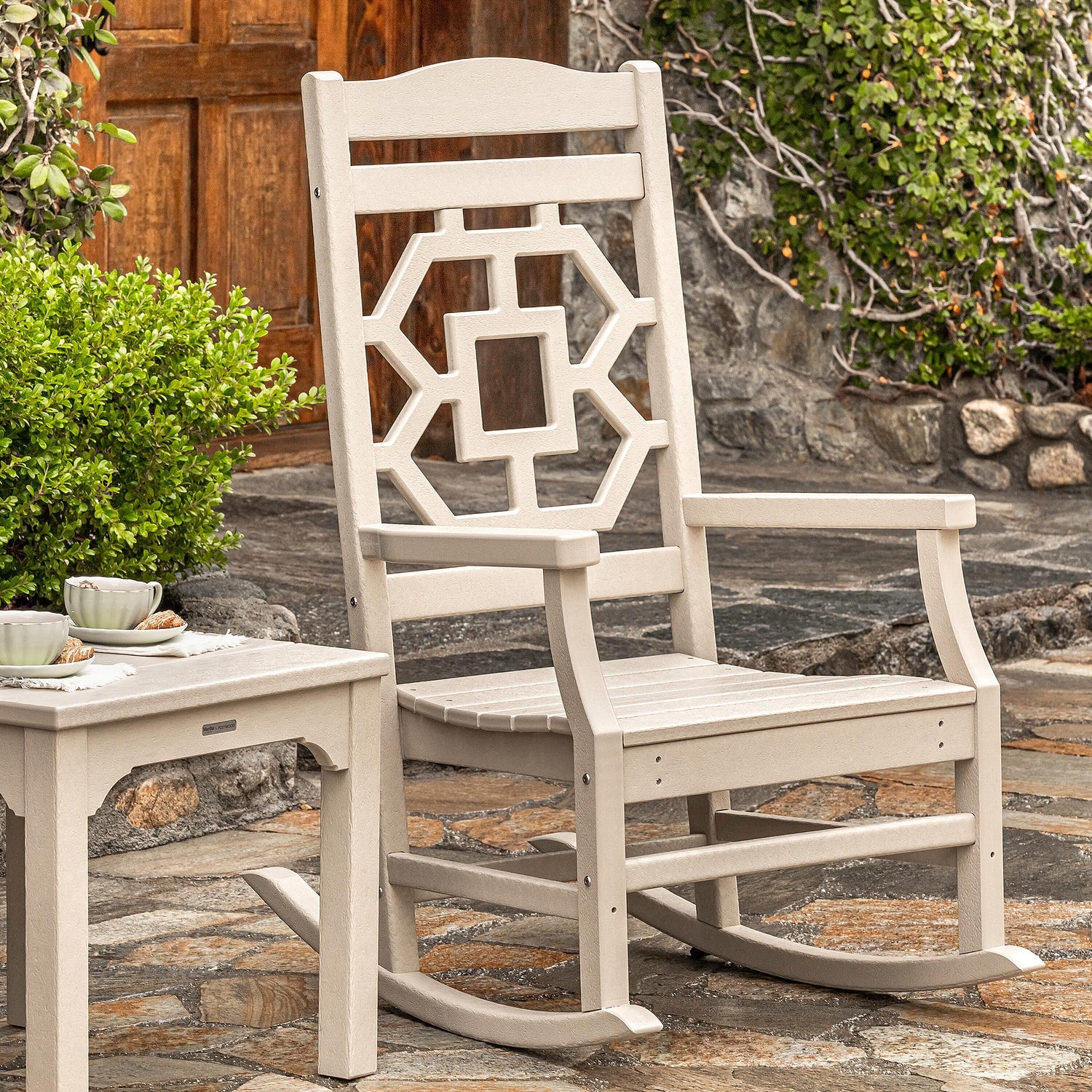Our USA-made POLYWOOD® Furniture is the epitome of timeless outdoor elegance fused with unparalleled durability. The Chinoiserie Rocking Chair features classic styling, gentle motion, and an embracing silhouette that puts relaxation on repeat; also note its graceful lines and intricate latticework.