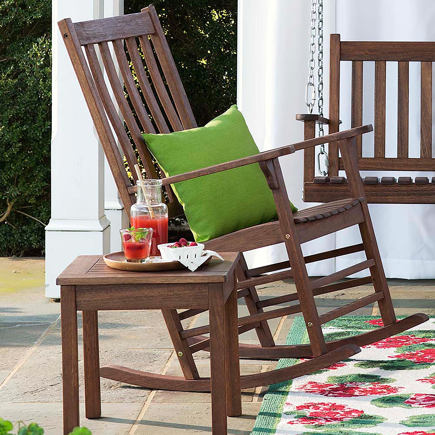 A rich, multi-step finish offers gorgeous style and long-lasting durability. A perfectly contoured back and smooth rocking function will make this rocking chair your favorite seat. Assembly required.