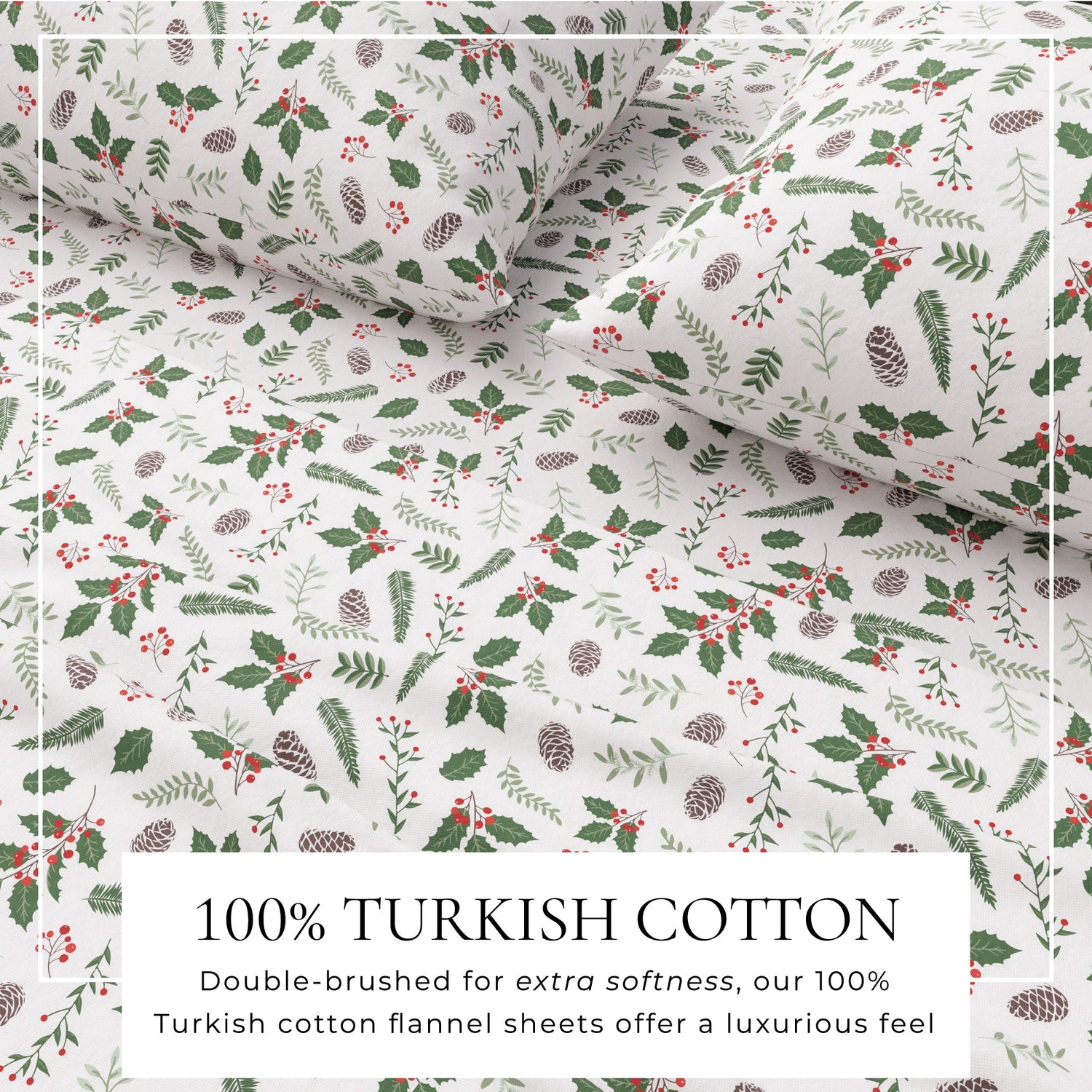 Embrace the holiday spirit with our festive Turkish cotton flannel sheets, featuring delightful holiday prints that bring a playful touch to your bedroom decor. These double-brushed flannel sheets offer exceptional softness and cozy warmth, making them the perfect choice for winter nights. The natural cotton fibers ensure breathable comfort without overheating. Despite their playful designs, these sheets are made for durability and quality, standing up to multiple washes while becoming even softer over time. Make these flannel sheets your winter go-to for a warm and inviting sleep experience.