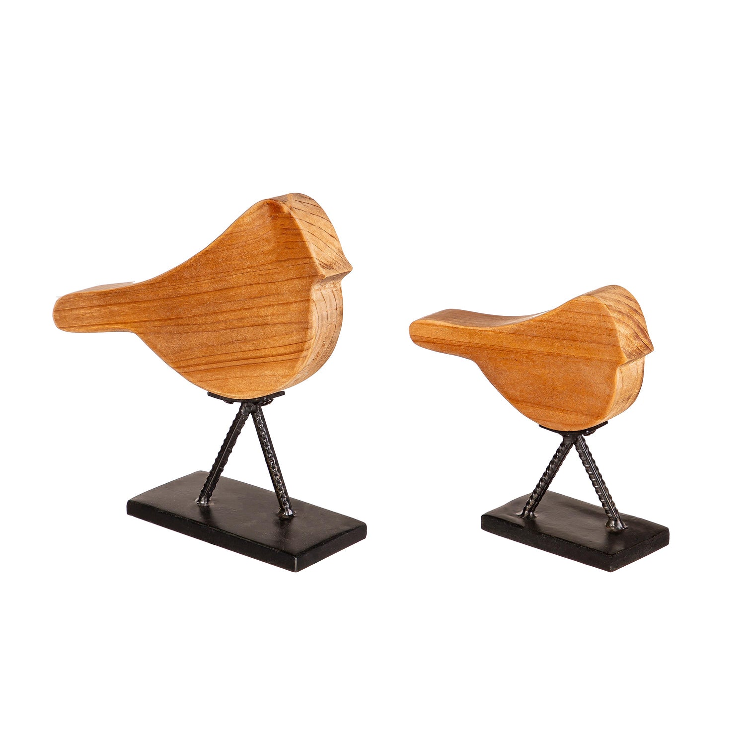 These Wood and Metal Tabletop Décor add a natural look and feel to any space. Shaped like birds, the bodies have been crafted of wood with metal bases to act as the legs. These neutral décor pieces are ideal for pairing with any display while offering a minimalist, nature-inspired look. Perfect for any season, any style, this set is ready to be displayed on a table, counter, mantel, shelf and more. Each set comes with a Medium and Small size: 6.3 x 2 x 6.1.
