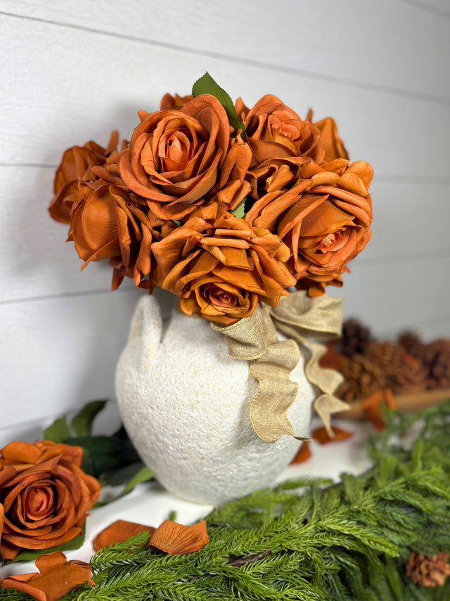 Artificial Real Touch Autumn Roses - Bundle of 10 - Bendable Latex Stems