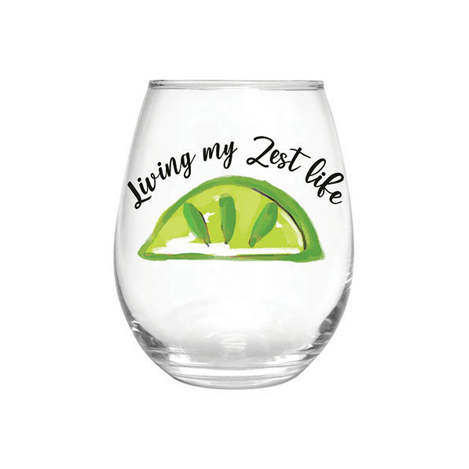 Add some zest to your cocktail hour with this stemless wine glass. With its punny "Living my zest life" message and lime design, this glass is a fun and uplifting way to enjoy your favorite wine or citrusy beverage. Holding up to 17 oz of liquid and crafted from high-quality glass, this stemless glass should be hand washed to ensure longevity. Snatch this wine glass up for yourself or give it to a wine lover in your life; it even comes in a coordinating decorative gift box, making it the perfect present!