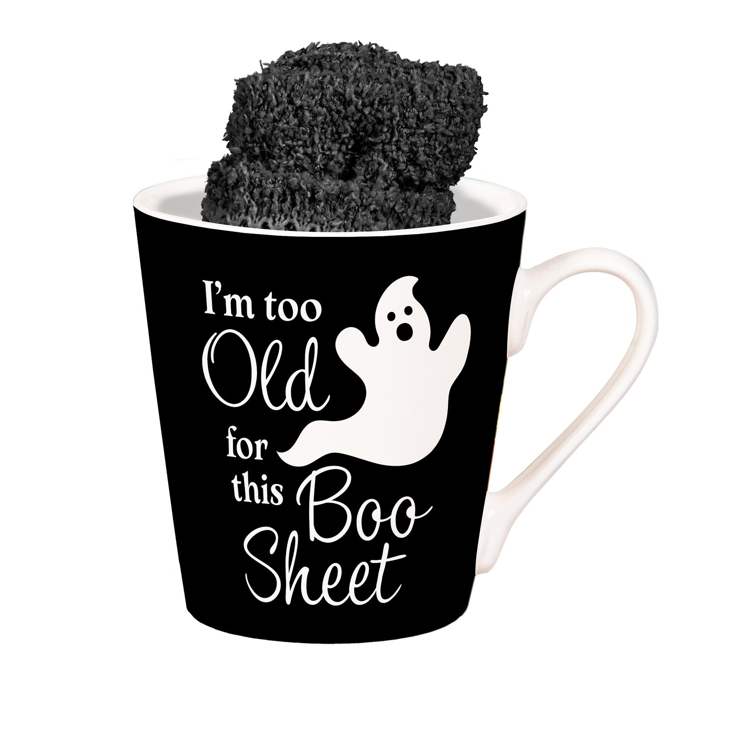 I'm Too Old For This Boo Sheet Ceramic Flare Cup and Black Socks Gift Set, 12oz, Gift Box