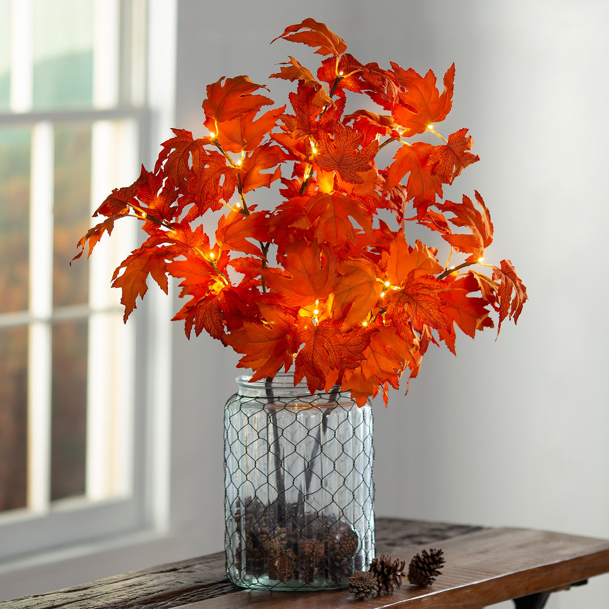 These colorful branches add instant elegance with rich foliage and warm white LEDs. Place the branches in a vase and display as a centerpiece on the dining table, on a nightstand or the mantel. They add no-fuss color and glow anywhere with no watering, fading or shedding like real foliage.