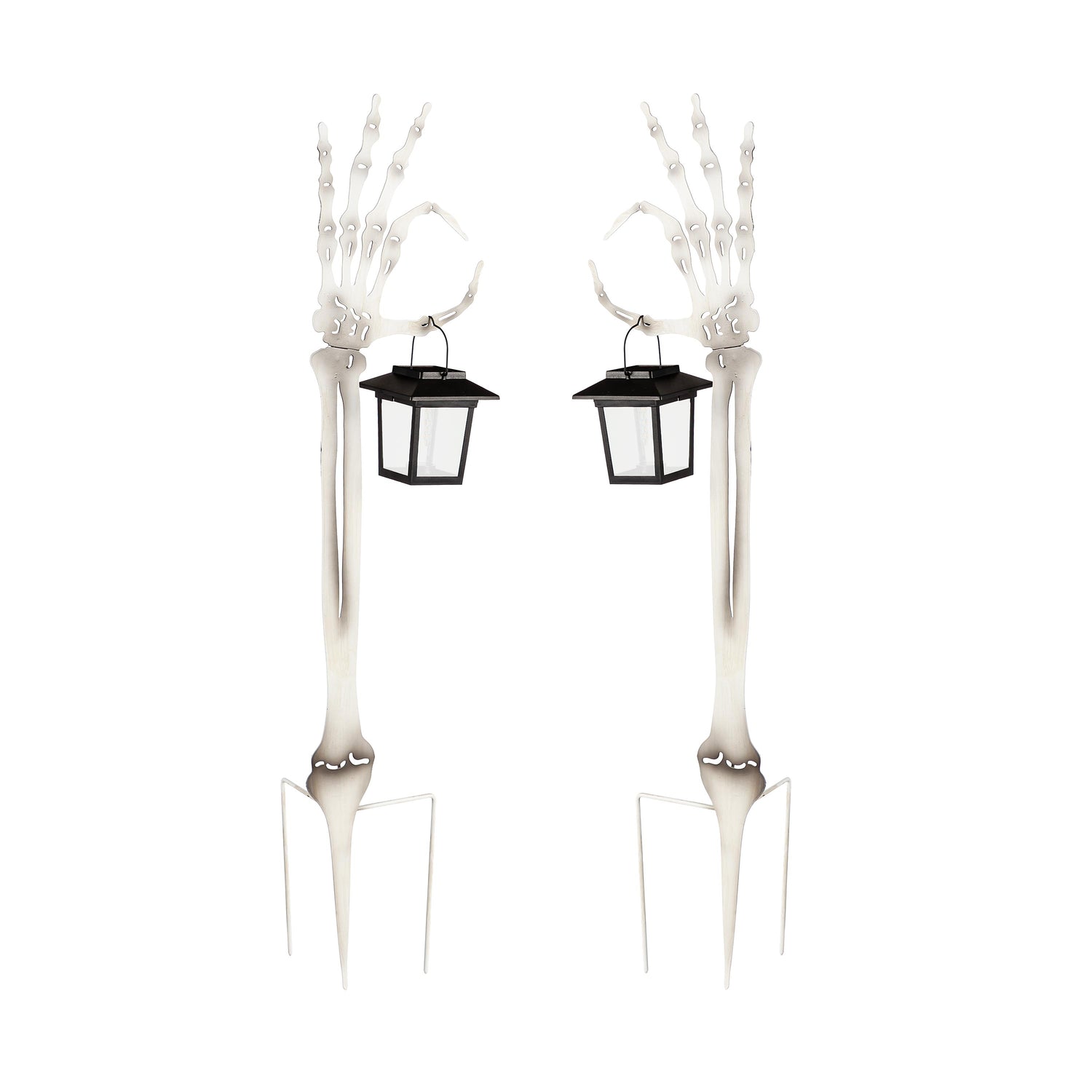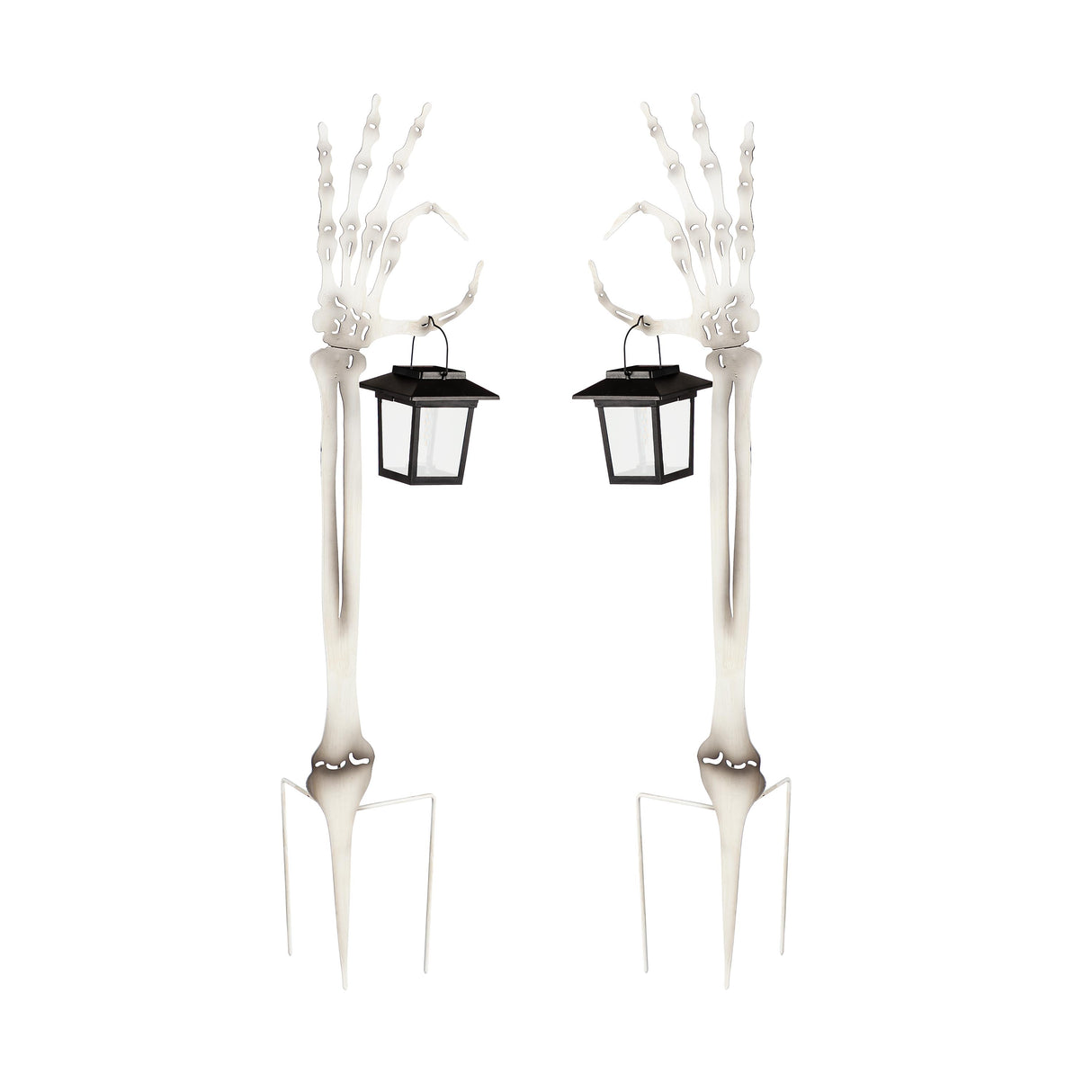 Halloween Skeleton Arm Metal Stakes with Solar Lanterns, Set of 2