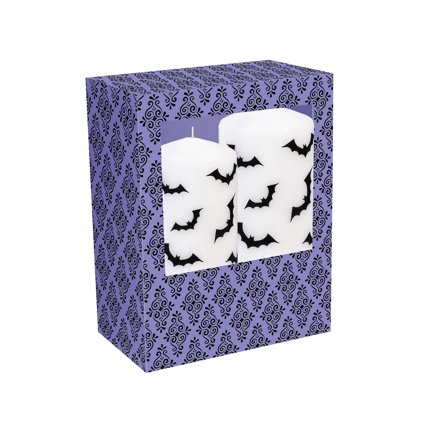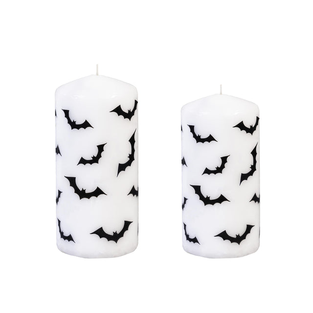 Happy Hauntings, Halloween Bat Pillar Wax Candle, Set of 2