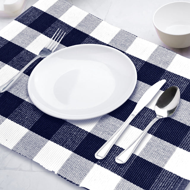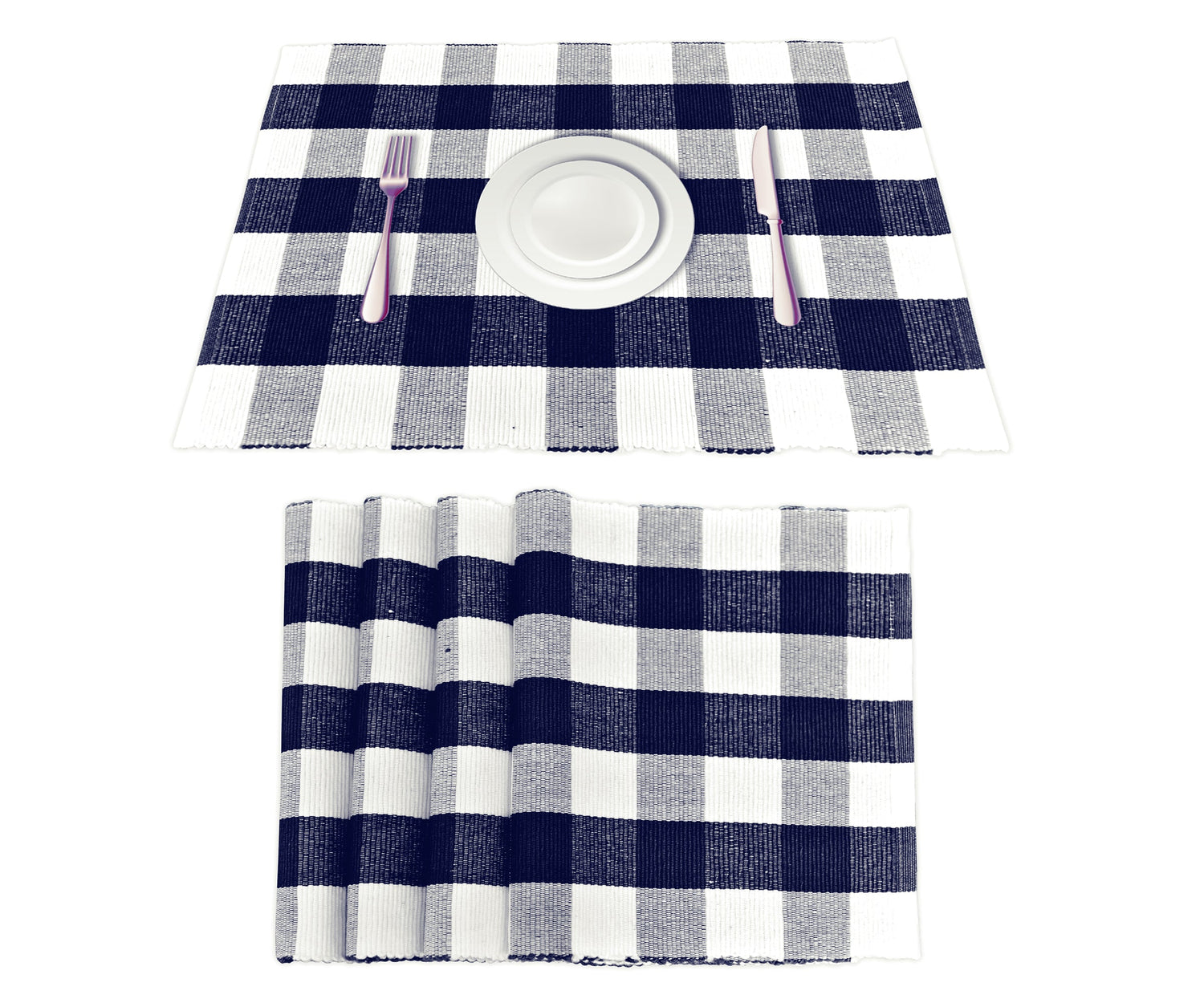 Features: These placemats showcase a classic black and white plaid design that blends easily with farmhouse, rustic, or modern dining themes. Made from soft, breathable 100% cotton, they feel comfortable to use and hold up well through daily dining.
