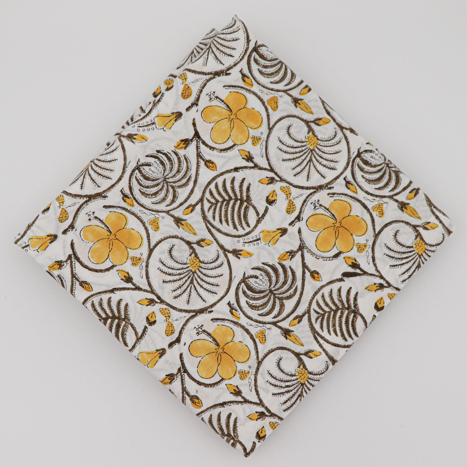 White Cotton with Yellow and Green Hand-Printed Design