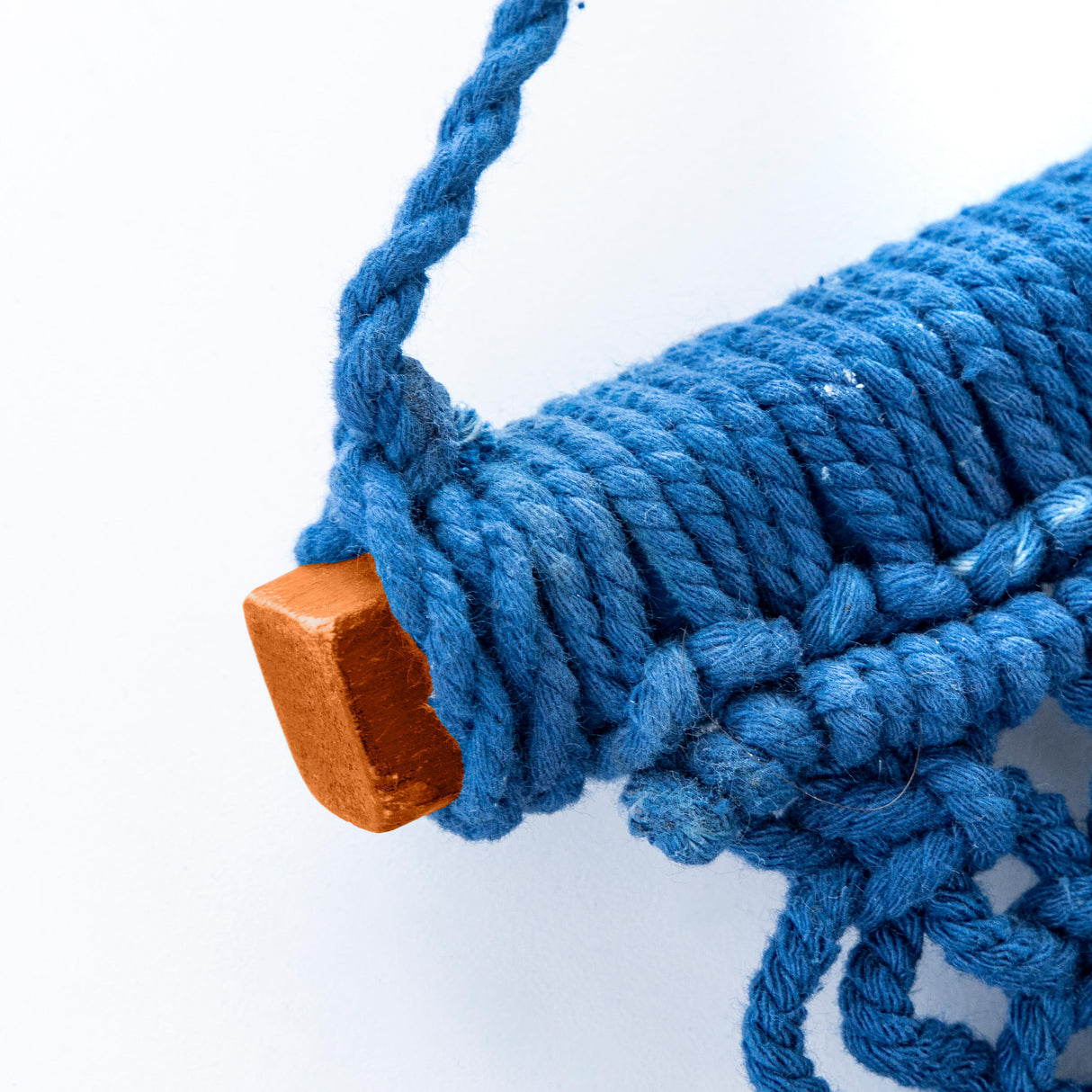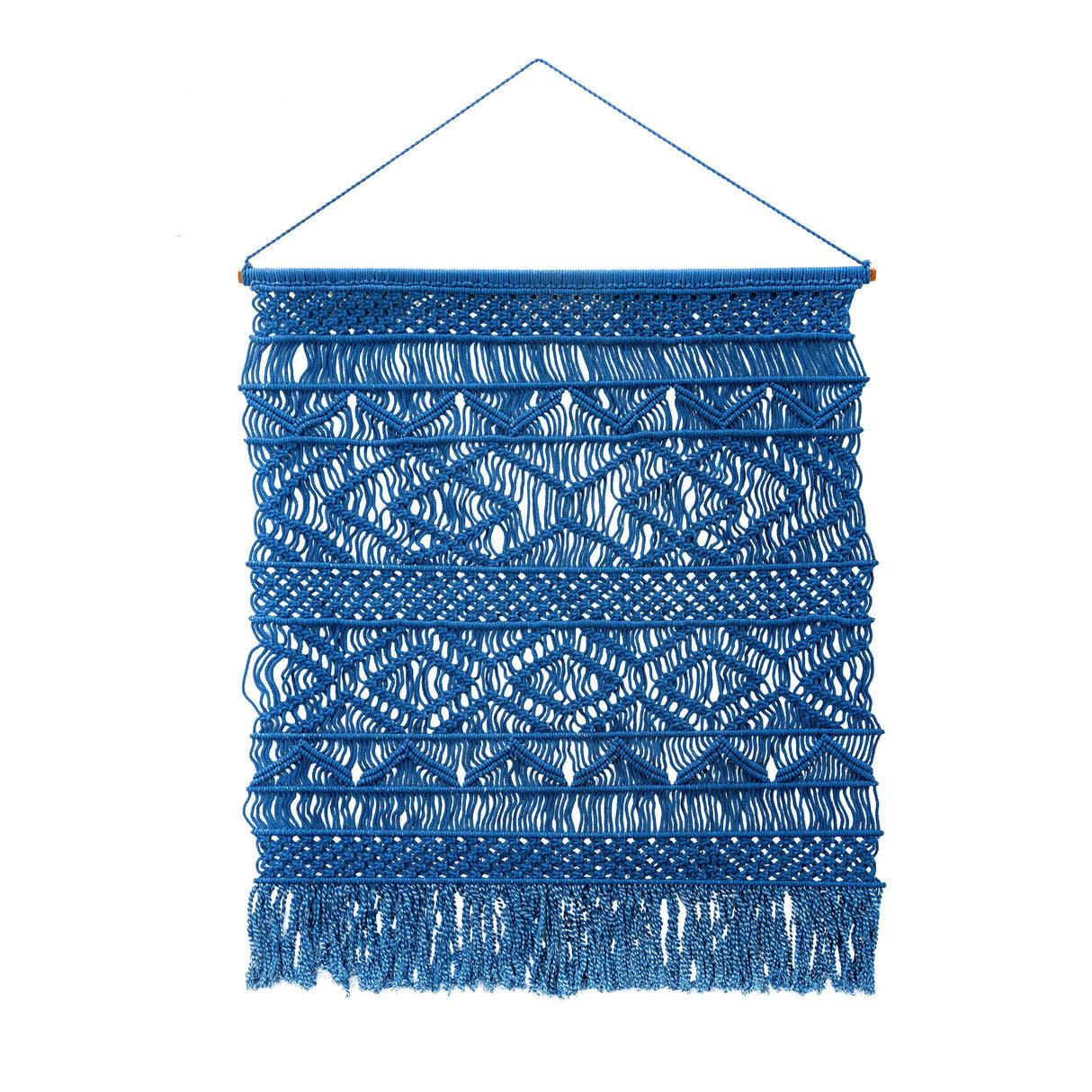 Adorned in deep, captivating navy blue, this sizable wall hanging commands attention and exudes a sense of sophistication. The intricate knotwork, meticulously handwoven by skilled artisans, showcases the mastery of their traditional techniques, resulting in a stunning display of textures and patterns.
