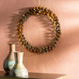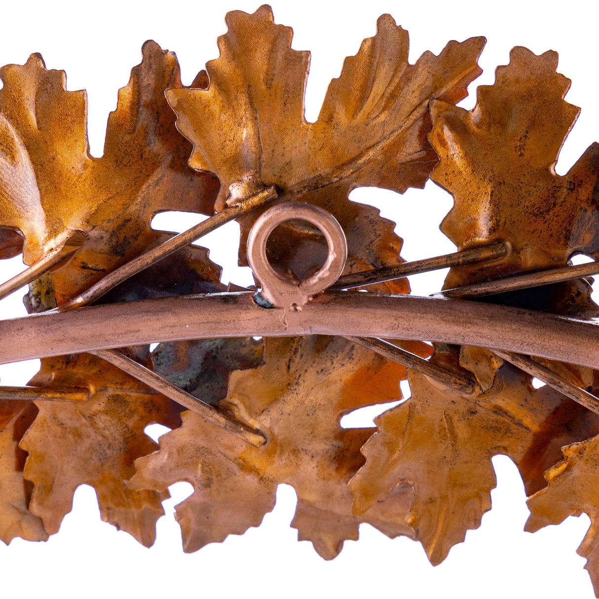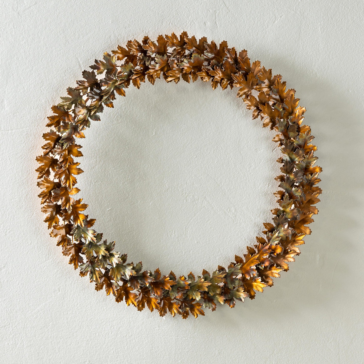 With warm hues of gold, copper, and bronze, the metal leaves come together in a graceful dance, forming a harmonious circle that symbolizes the eternal cycle of life. The wreath's intricate design offers a touch of sophistication, making it a perfect addition to both contemporary and traditional decor styles.