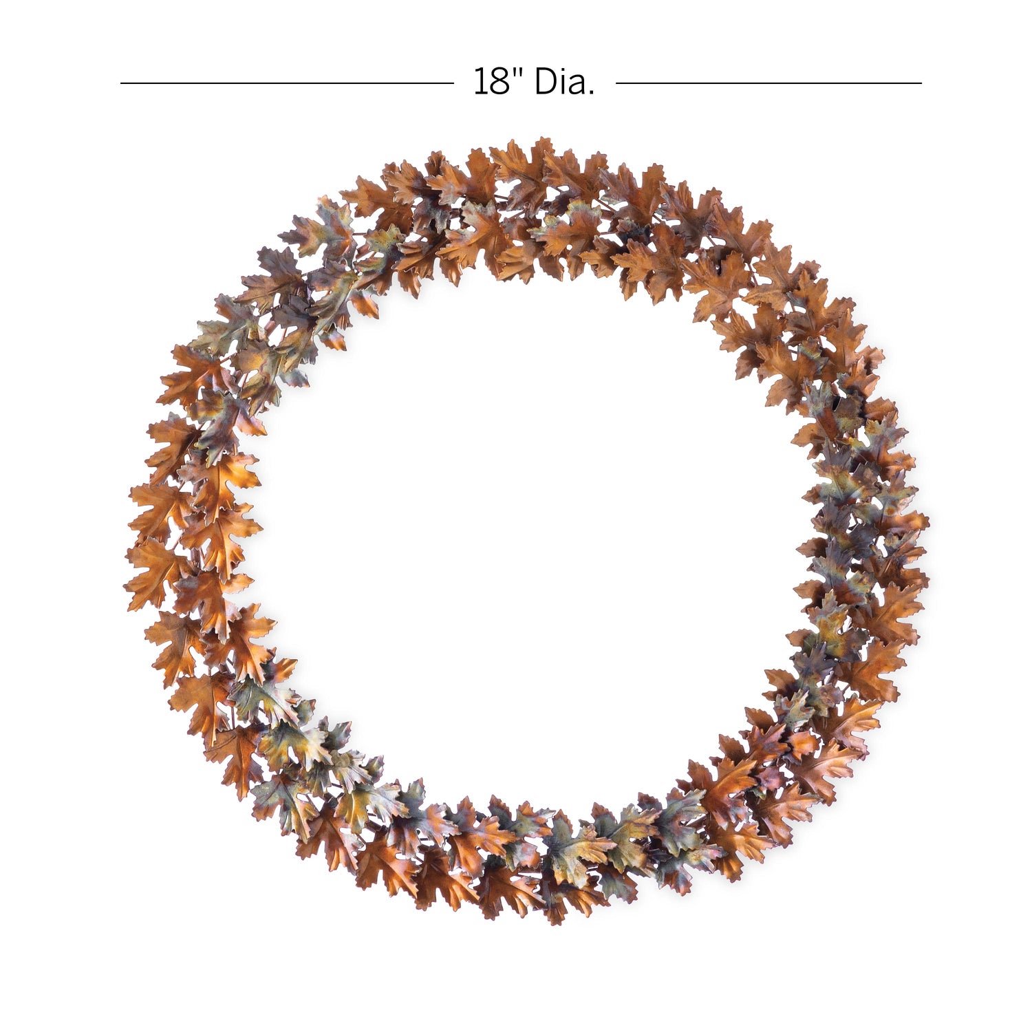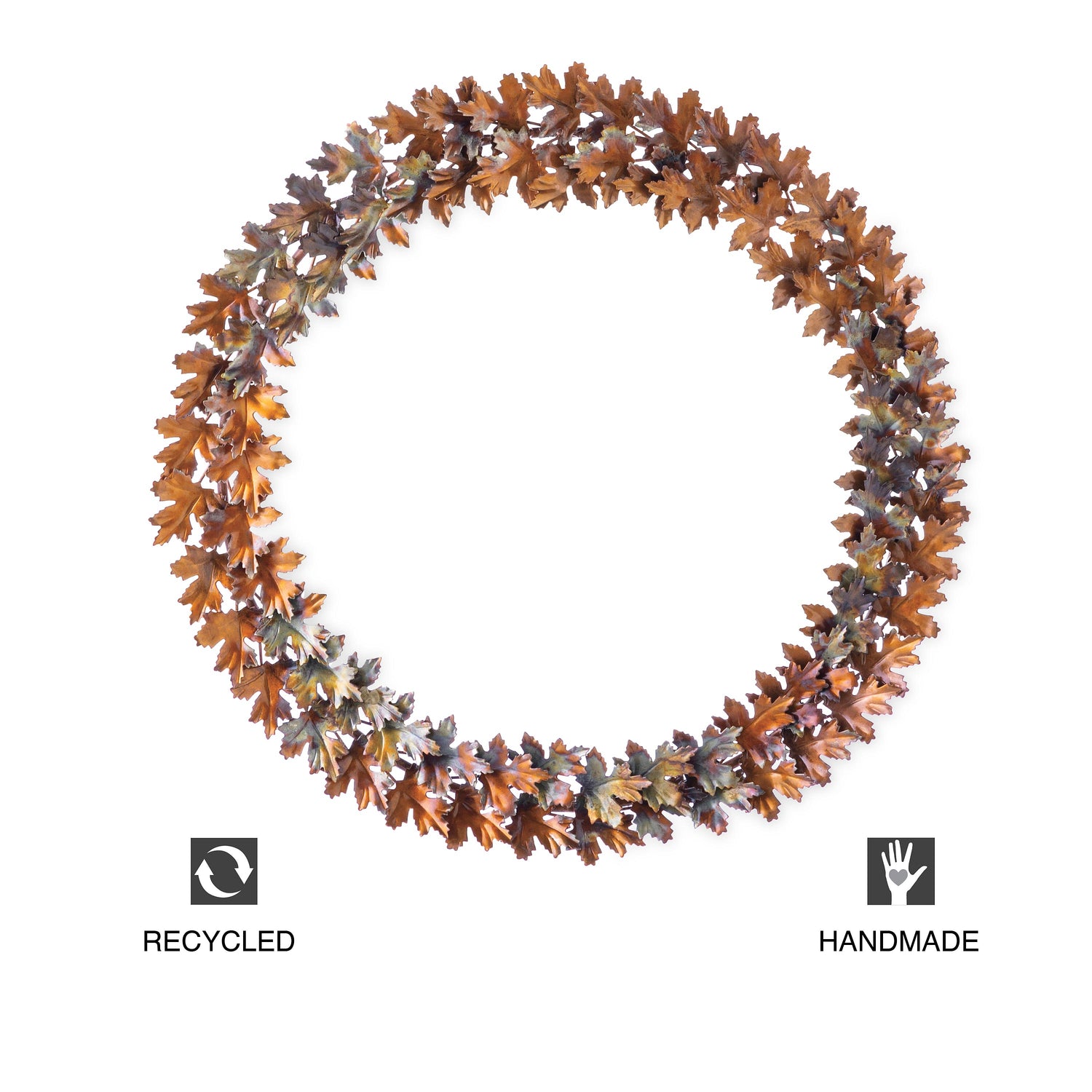 Handcrafted by skilled artisans, this wreath captures the essence of nature's transition, blending rustic charm with modern elegance. Each delicate leaf is meticulously shaped from high-quality metal, creating a lifelike representation of the foliage that adorns the trees during this magical time of year.