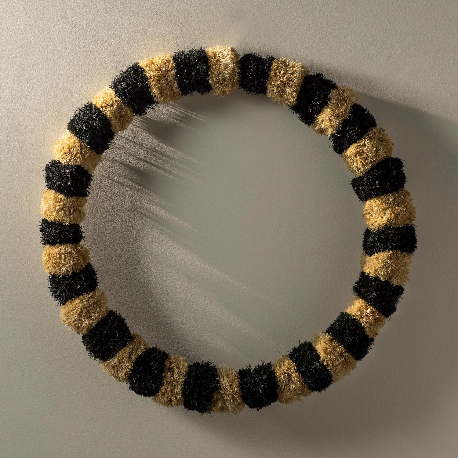 Crafted from durable sisal leaves dyed in a rich black hue, the wreath serves as a striking base. Interwoven natural-colored rings provide a beautiful contrast, enhancing the wreath’s circular shape and adding an extra layer of texture. Each wreath is handmade, showcasing the artistry and dedication of Indonesian craftsmen.