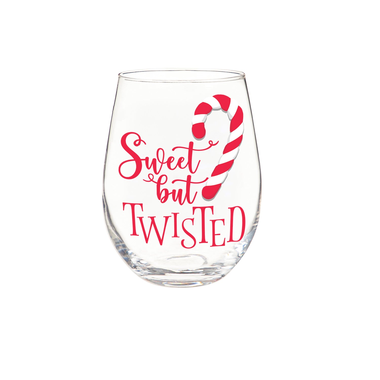 Baking Spirits Bright Wine Glass Stemless Glass, Sweet But Twisted, 17oz, Gift Box