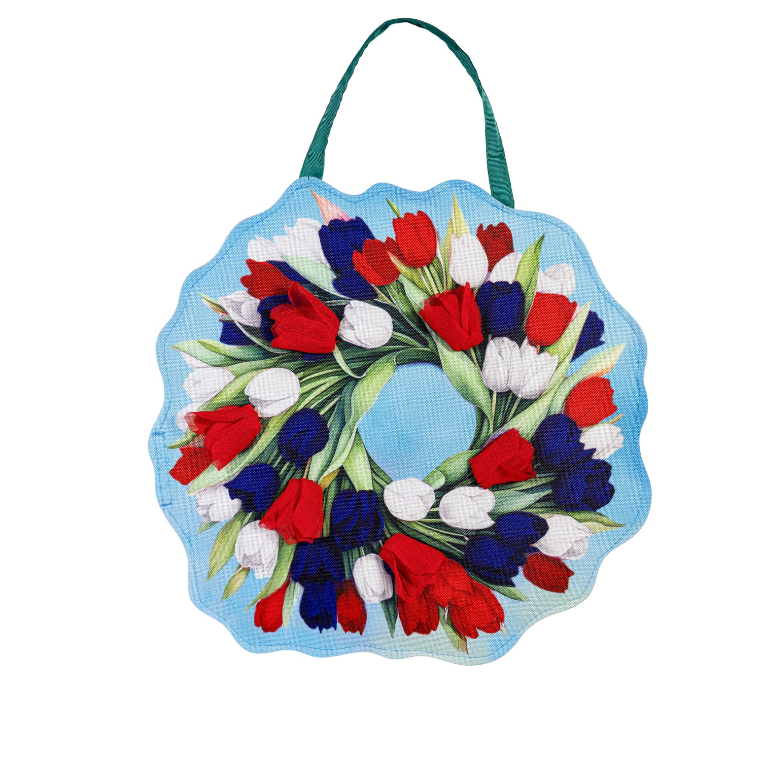 Spring Pink & Patriotic Tulips Wreath Reversible Door Decor