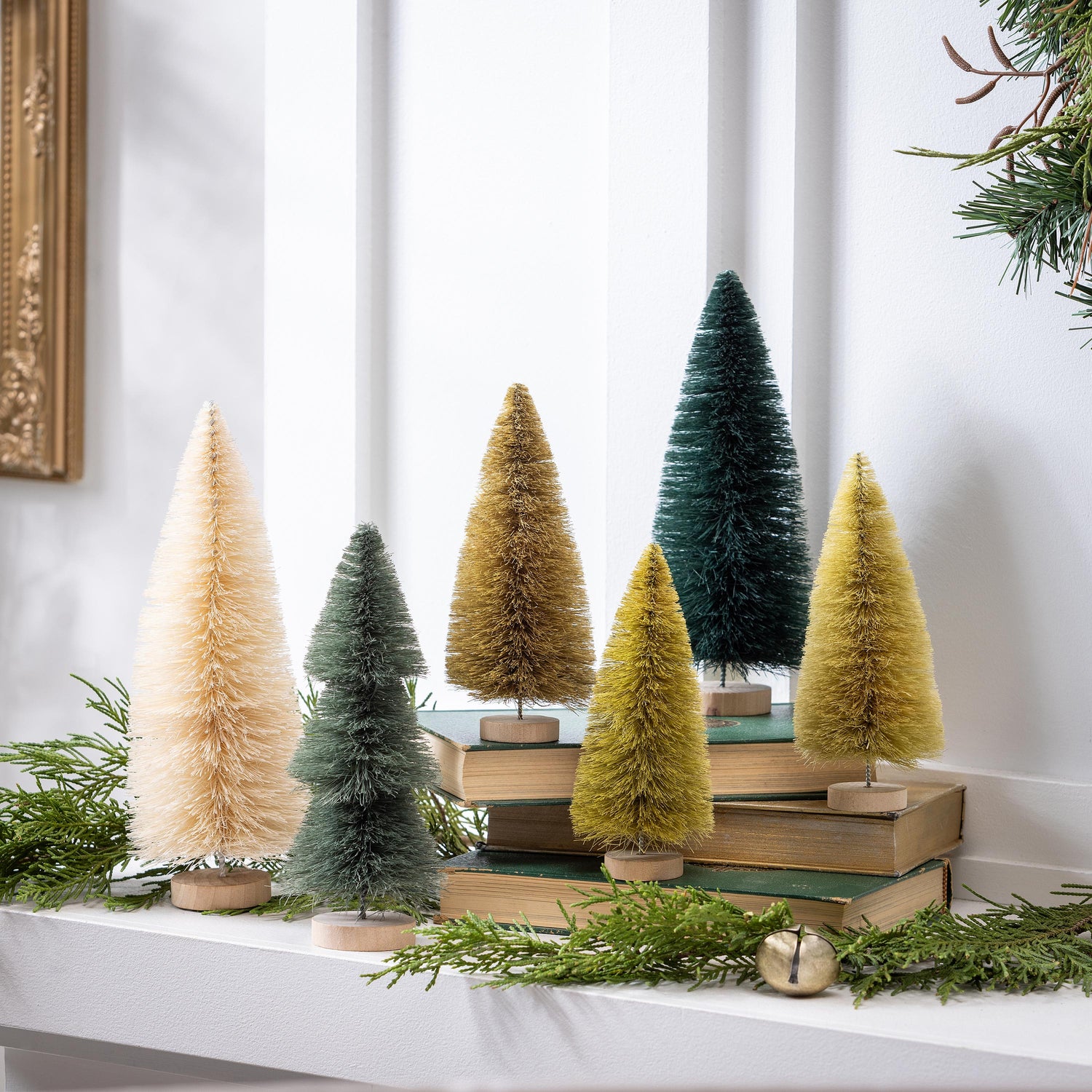 Shades of Green Table Décor Bottle Brush Tree Set
