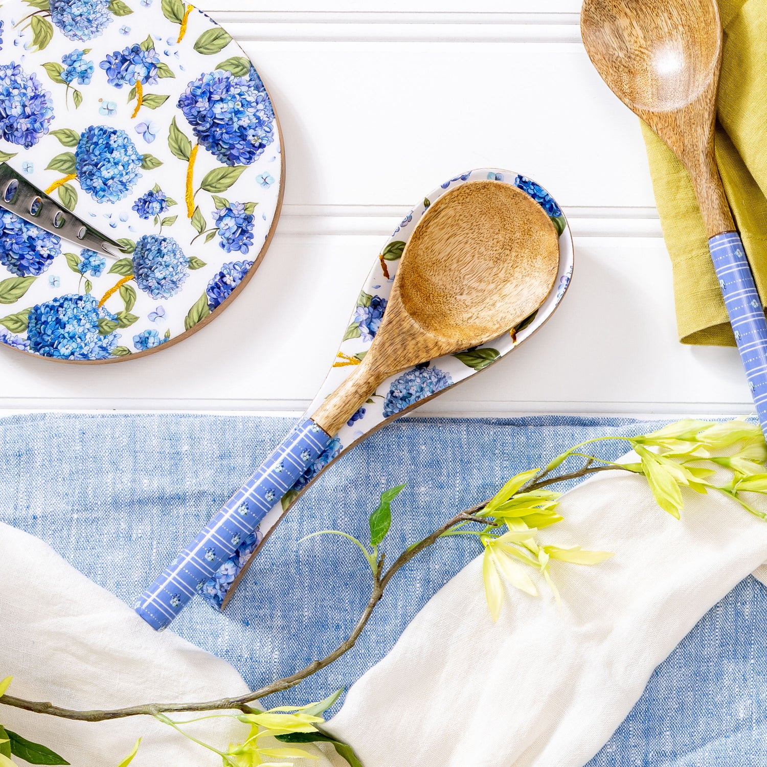 VivaStyle Spoon Rest, Wood Spoon Rest, Hydrangea, 10.25"L
