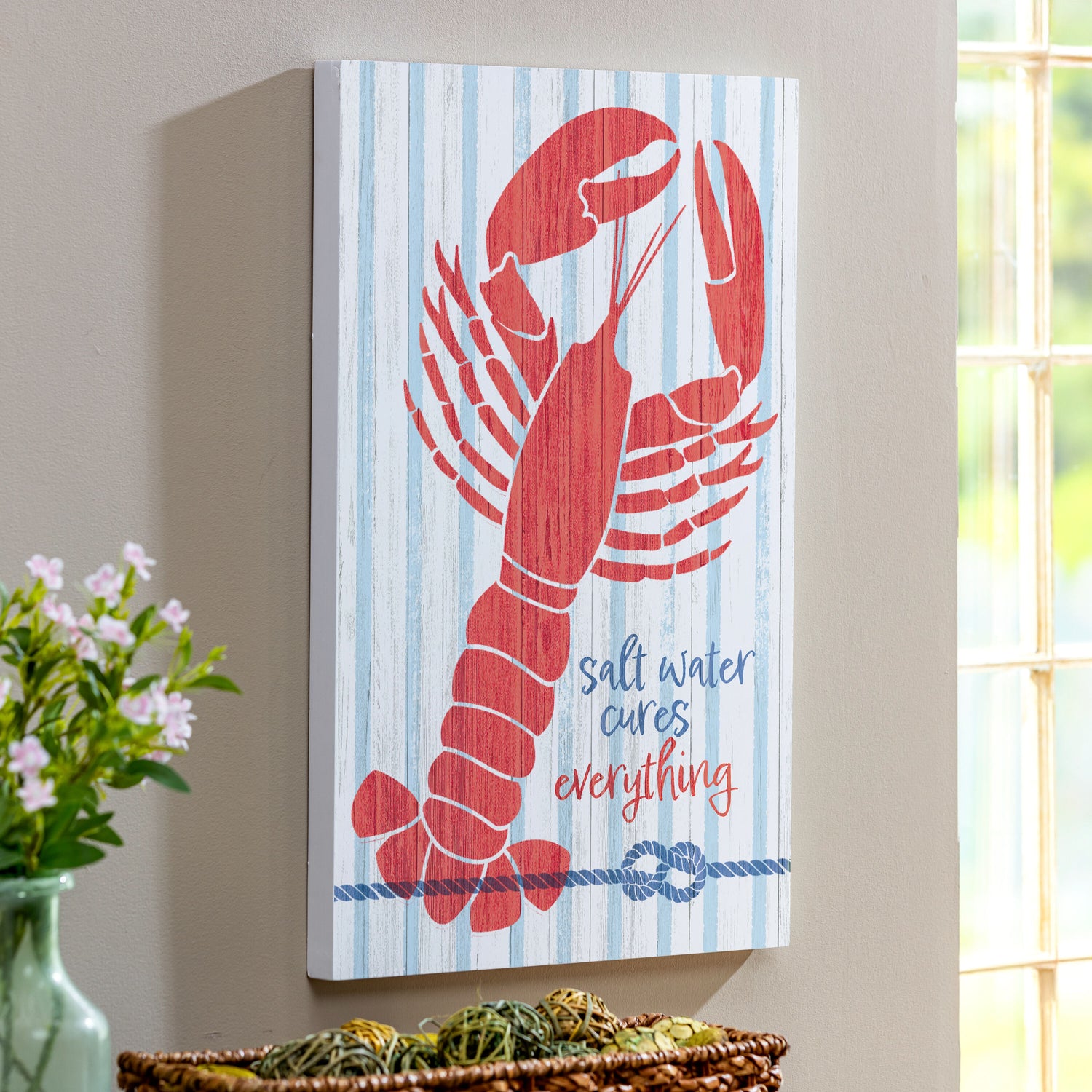 Coastal Wooden Wall Art Salt Water Lobster 16x24"