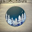 This piece features a pine forest with a night sky backdrop. The top layer (pine forest) can be either polished steel or rusted. The back layer is painted a navy blue fading into black. Combined, they create an incredible contrast.