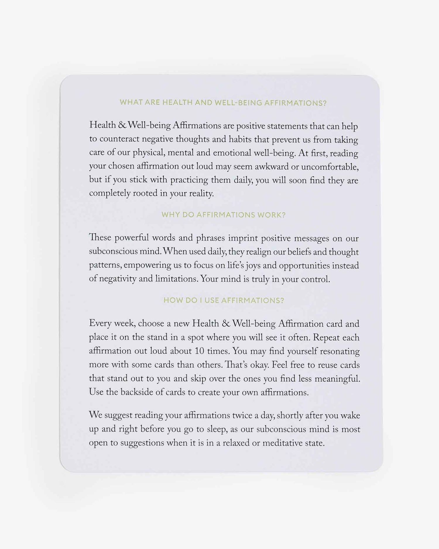 Health & Well-being Affirmations are ideal for those seeking to nurture their mind, body, and spirit. Whether you're kick-starting a fitness journey, managing stress, or simply aiming to enhance your well-being, these affirmations serve as your compass to health and happiness. Beechwood stand included.