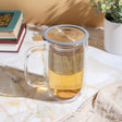 Our double-walled borosilicate glass mug with stainless steel infuser and lid is the perfect tea mug.  Wonderful for large mugs of tea or plenty of room for a tea latte with milk frothed to perfection.