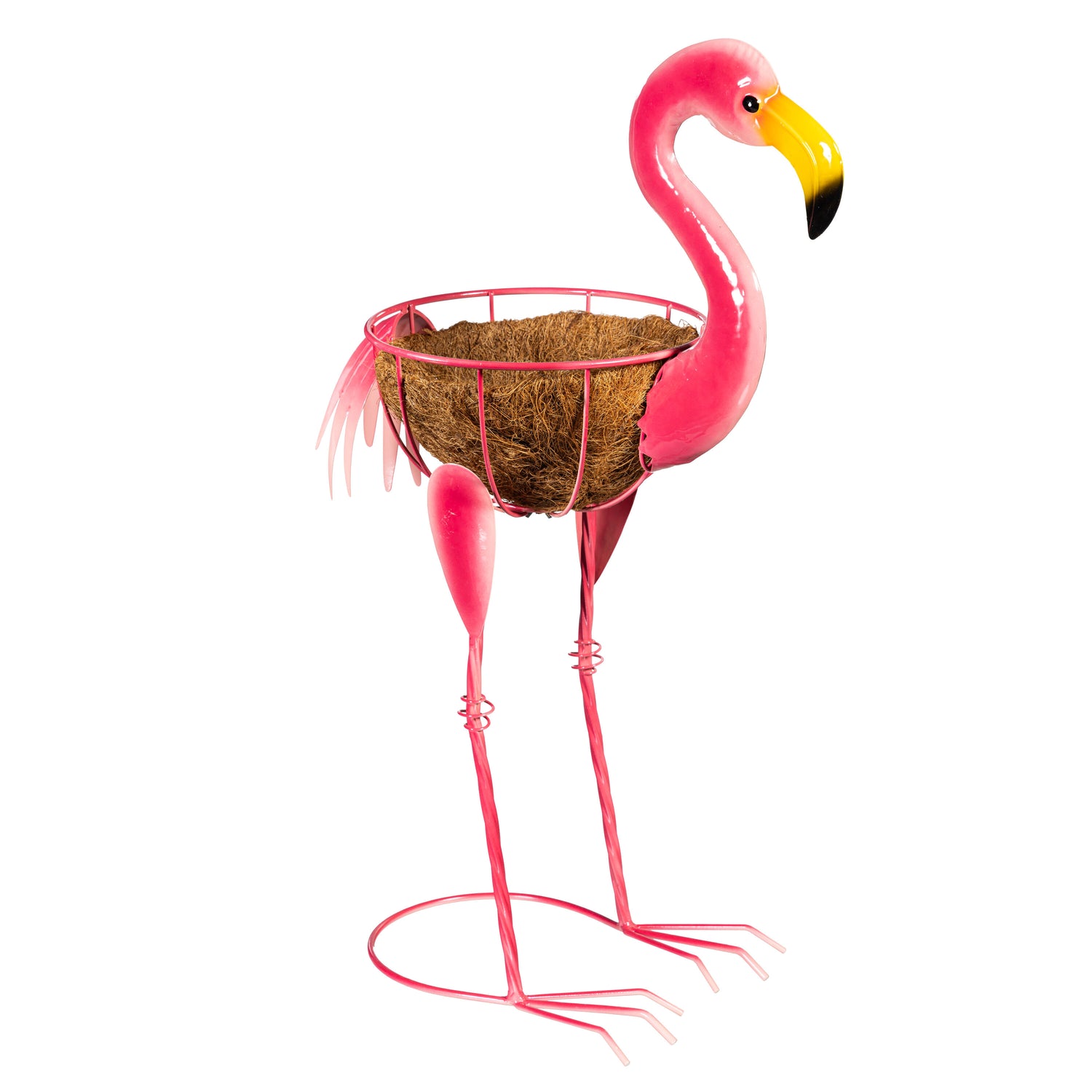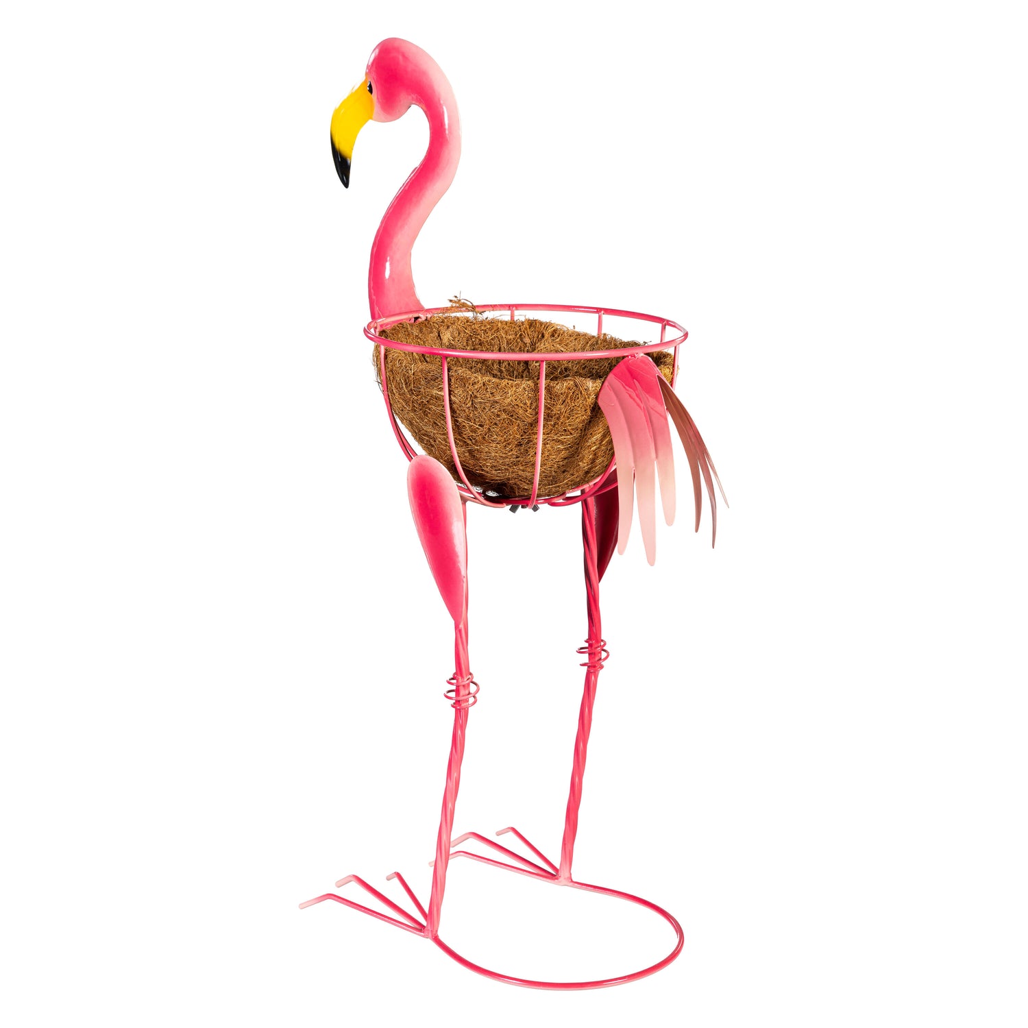 Palm Beach Planter, Metal Flamingo with Coco Insert, 25.7"H