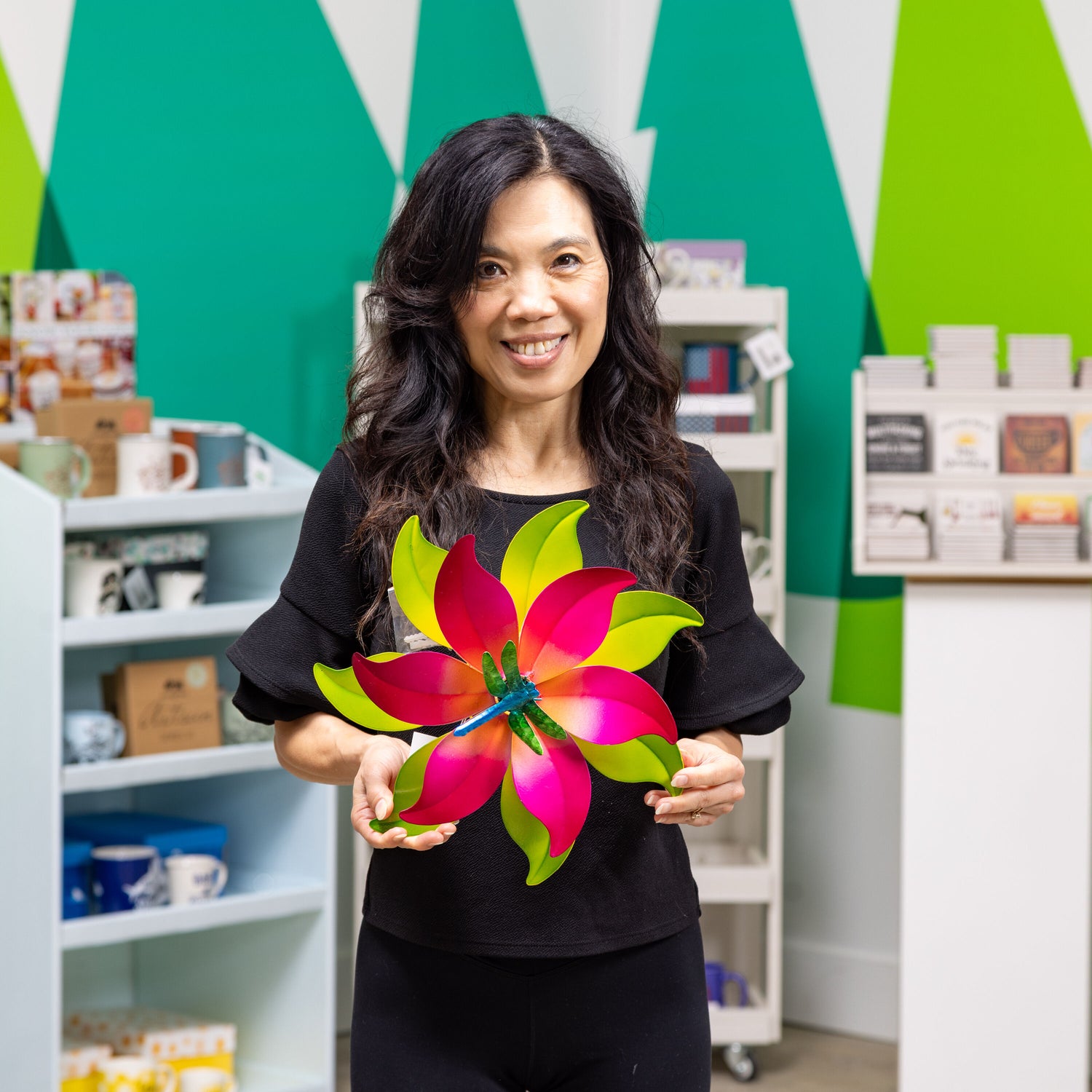 - Create a mesmerizing display in any outdoor space with this wind spinner.