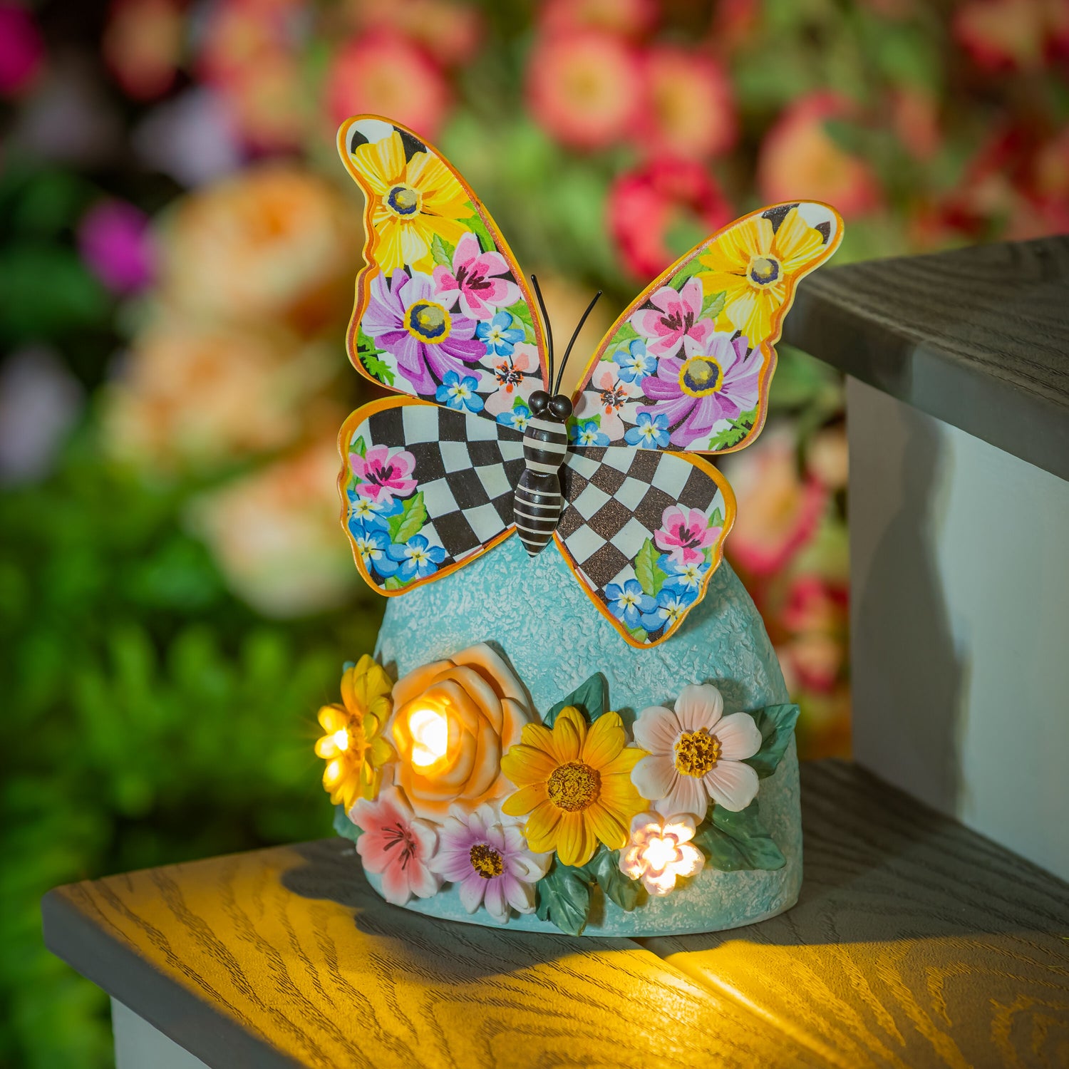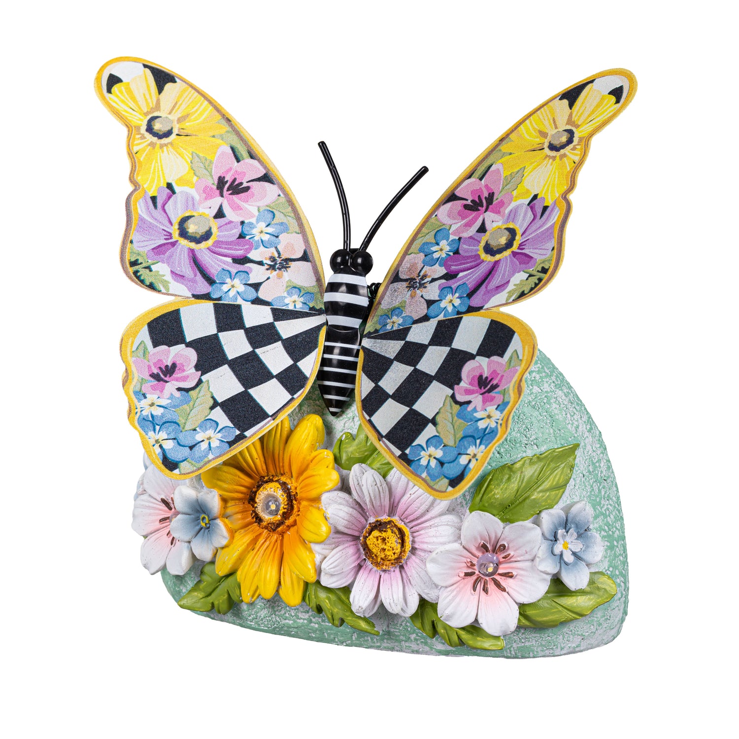 Pollinator Garden Statue, Metal Courtly Check Butterfly Solar Garden Statue, 8"H