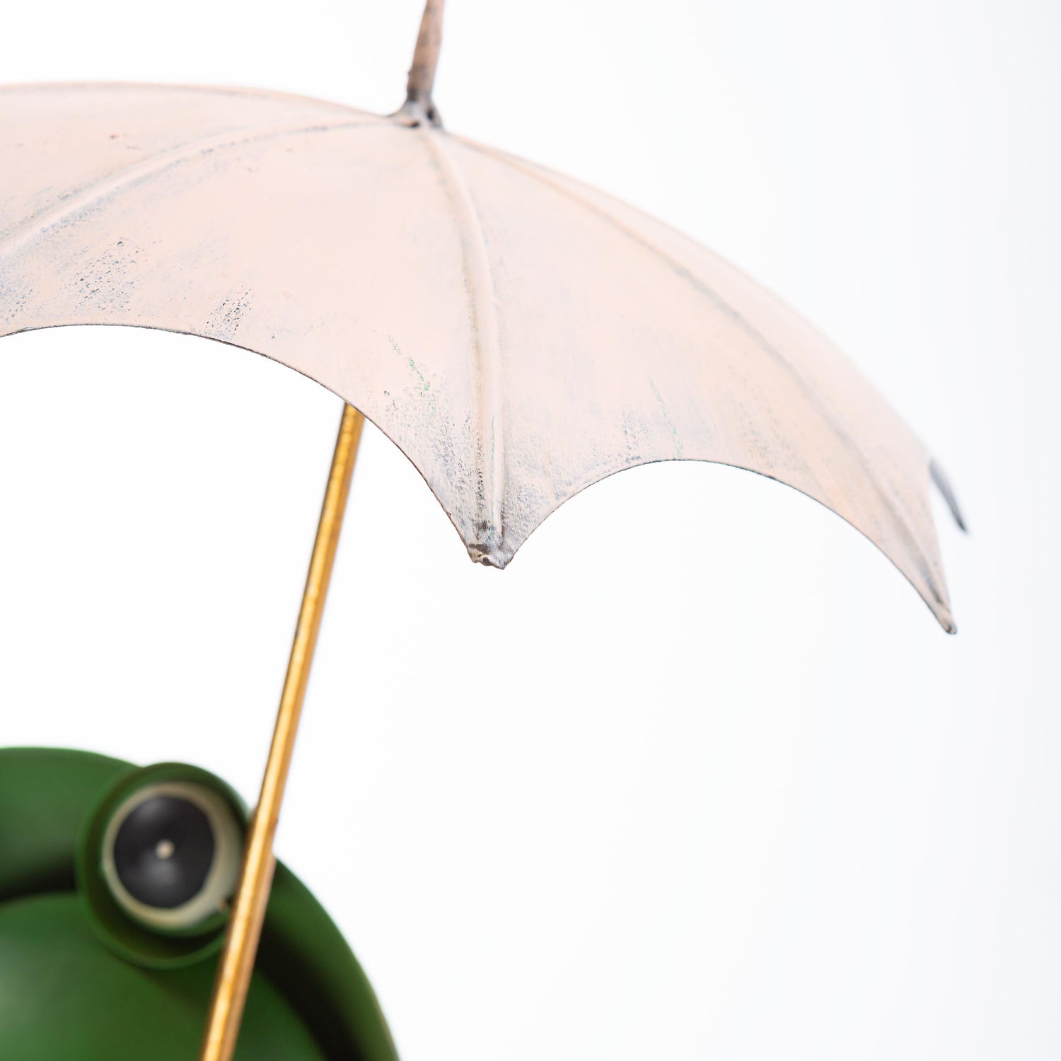 • Frog statue crafted of metal and weather-safe paint