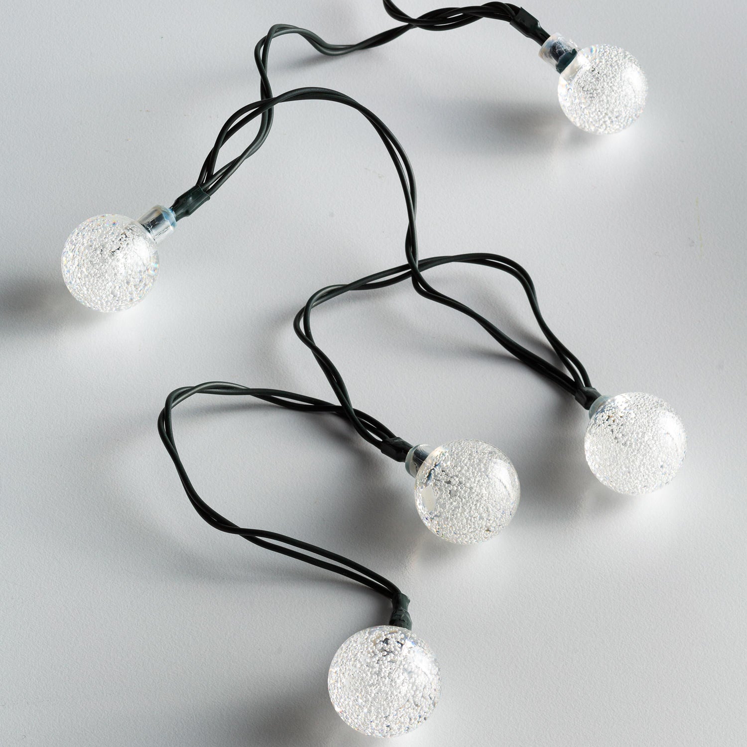 - Light string has 50 solar balls with a bubbling effect and warm white LED in each