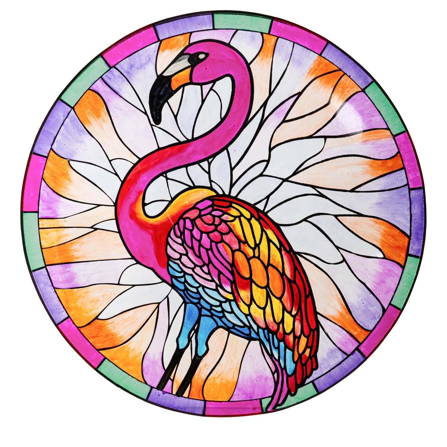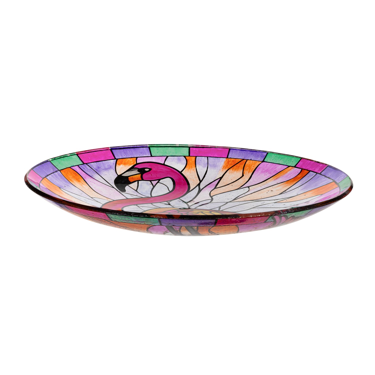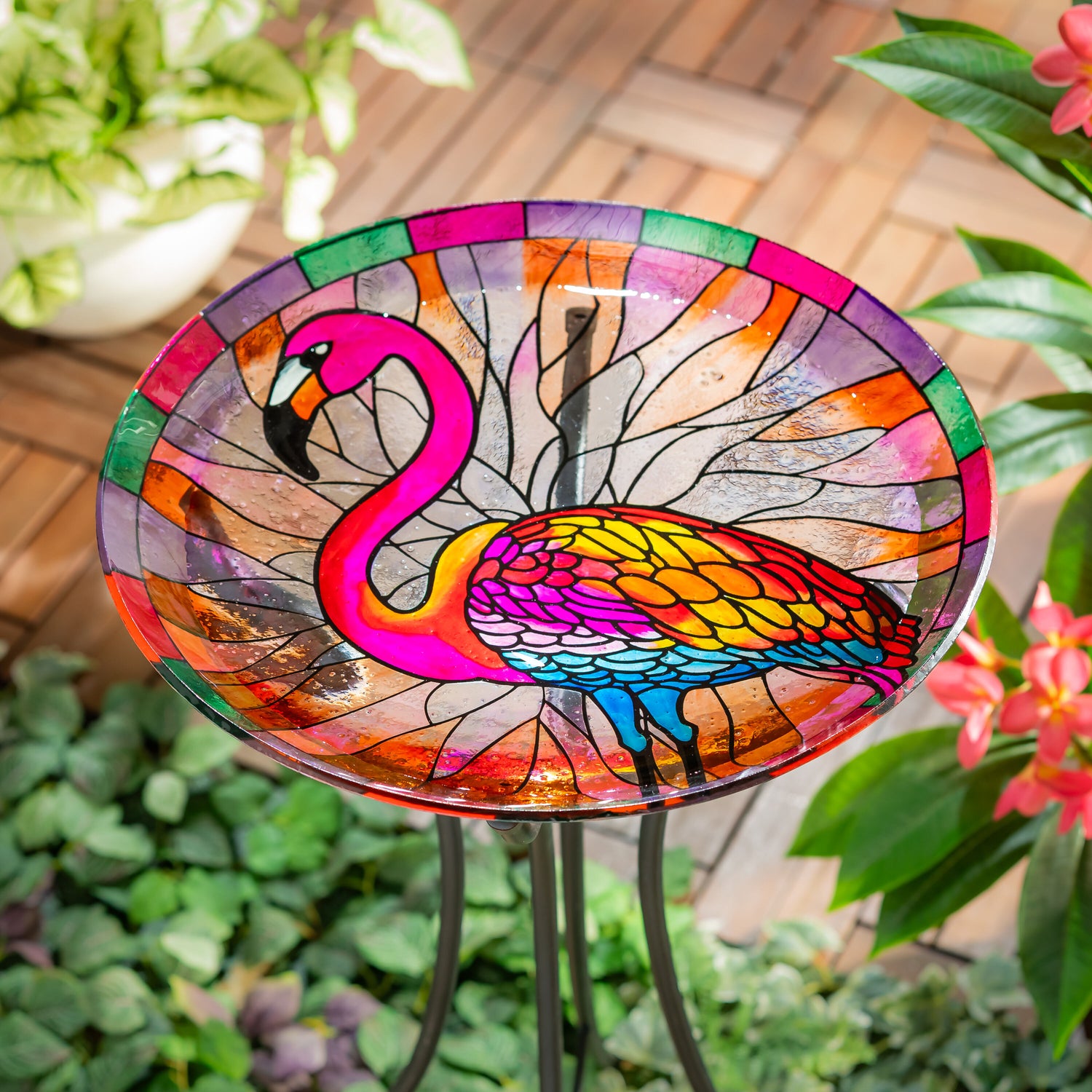 Palm Beach Birdbath, Stained Glass Flamingo Birdbath, 18"