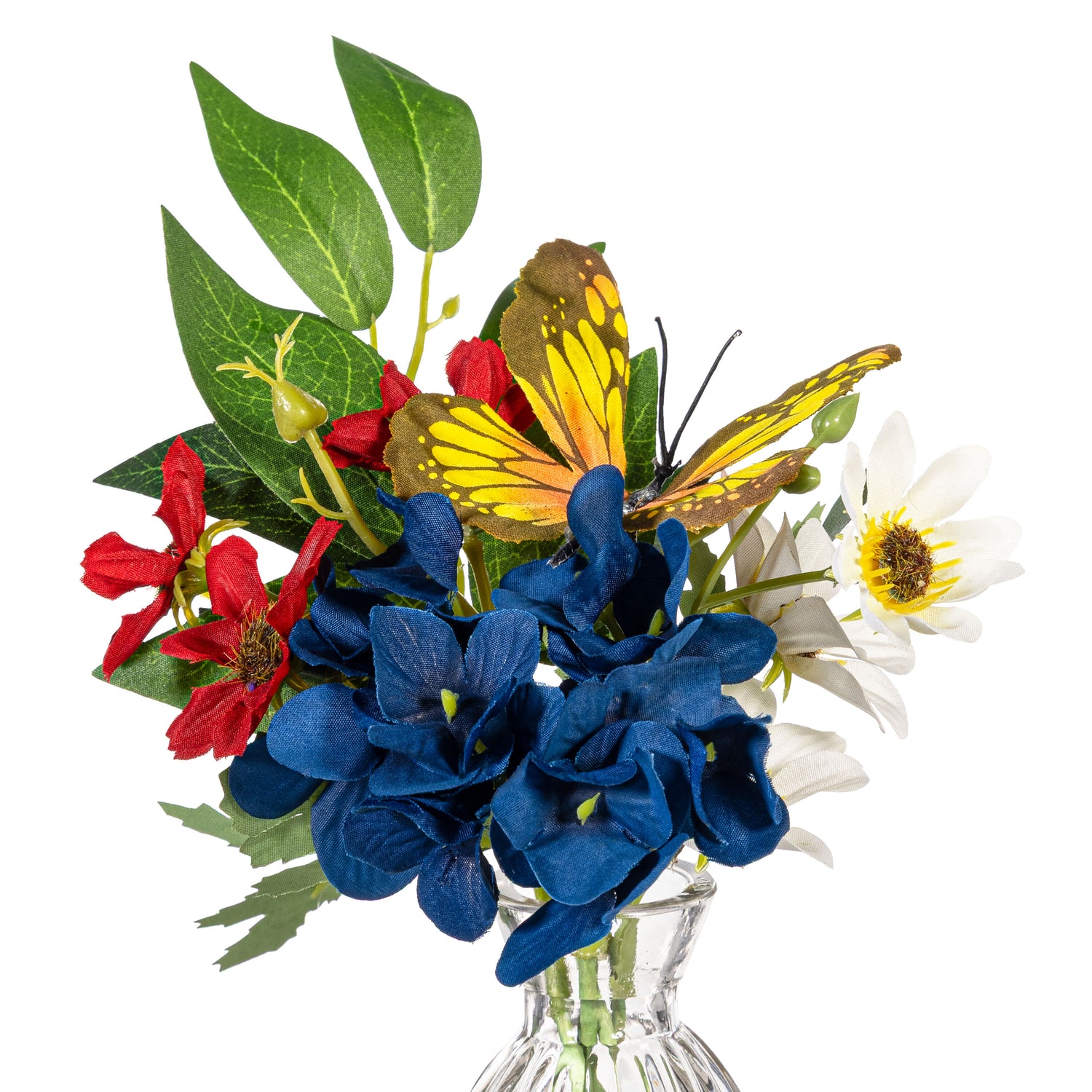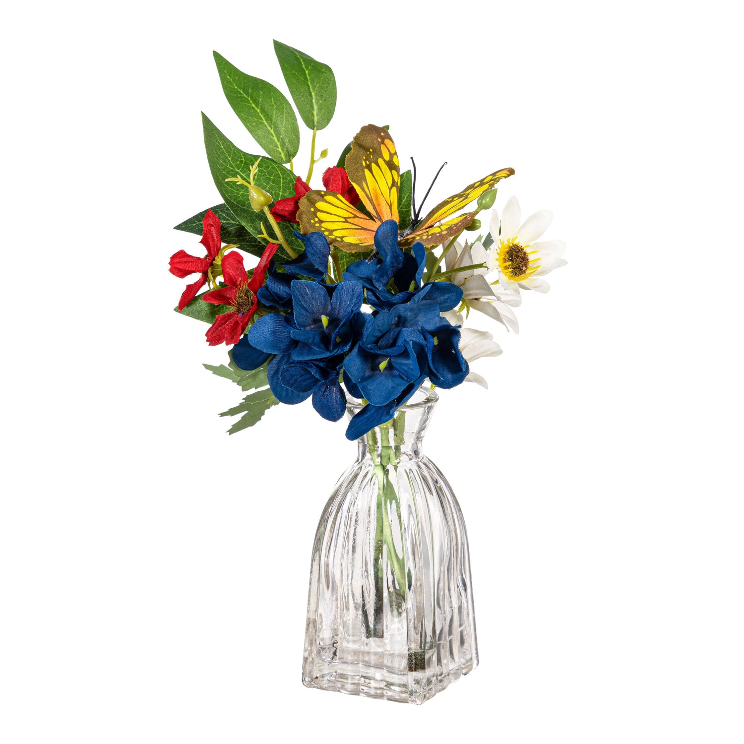 American Classic Faux Floral Table Decor Artificial with Butterflies in Glass Vase, 9.5"H