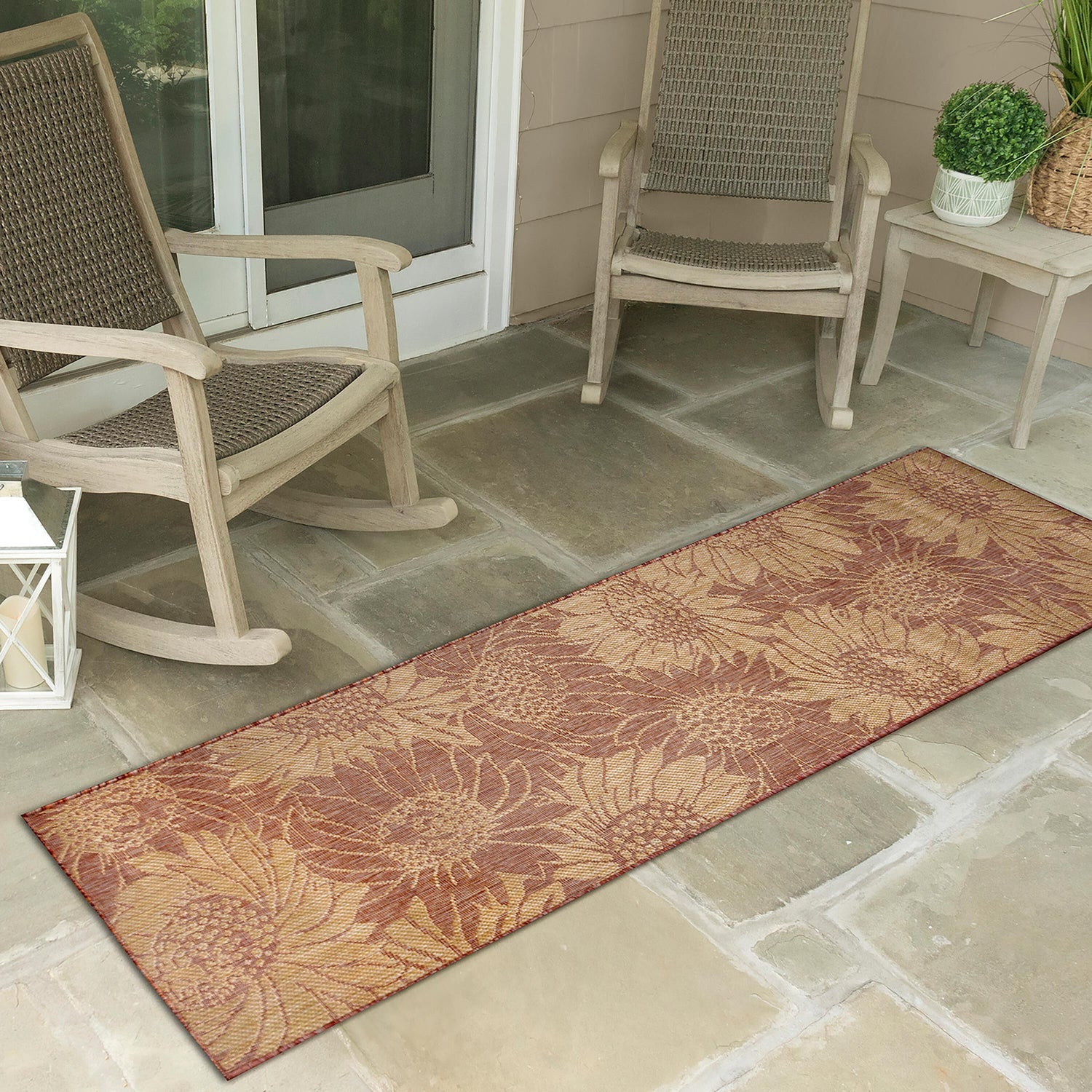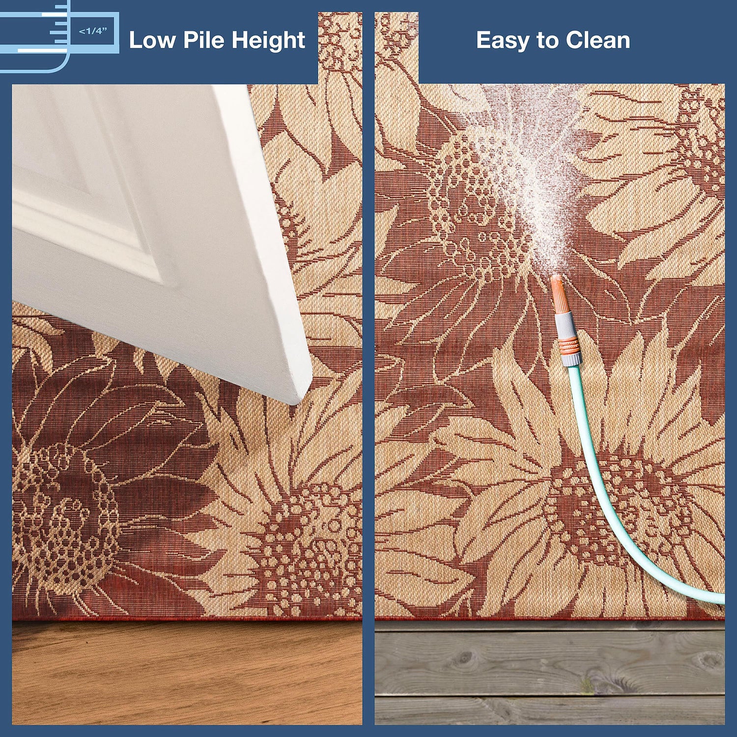 Make any space upbeat and cheerful with this bright, blooming Indoor/Outdoor Sunflower Rug. You’ll love the looks, the price and the durability. This indoor/outdoor rug has the beauty and softness of a traditional pile rug, but it's made of 100% polypropylene to stand up to high traffic indoors and out.