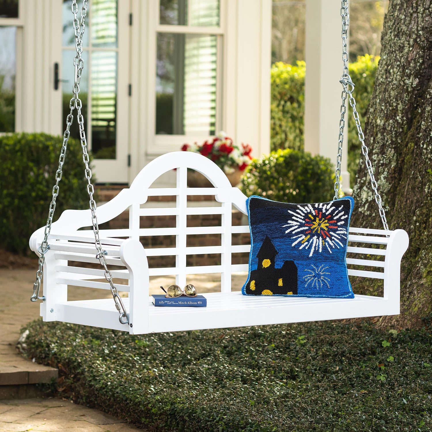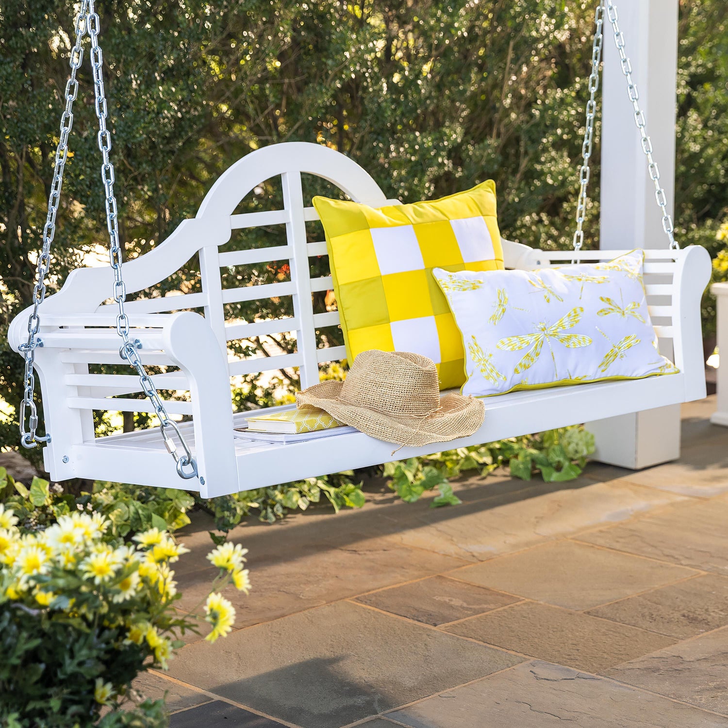 - Classic English garden style porch swing with graceful lines