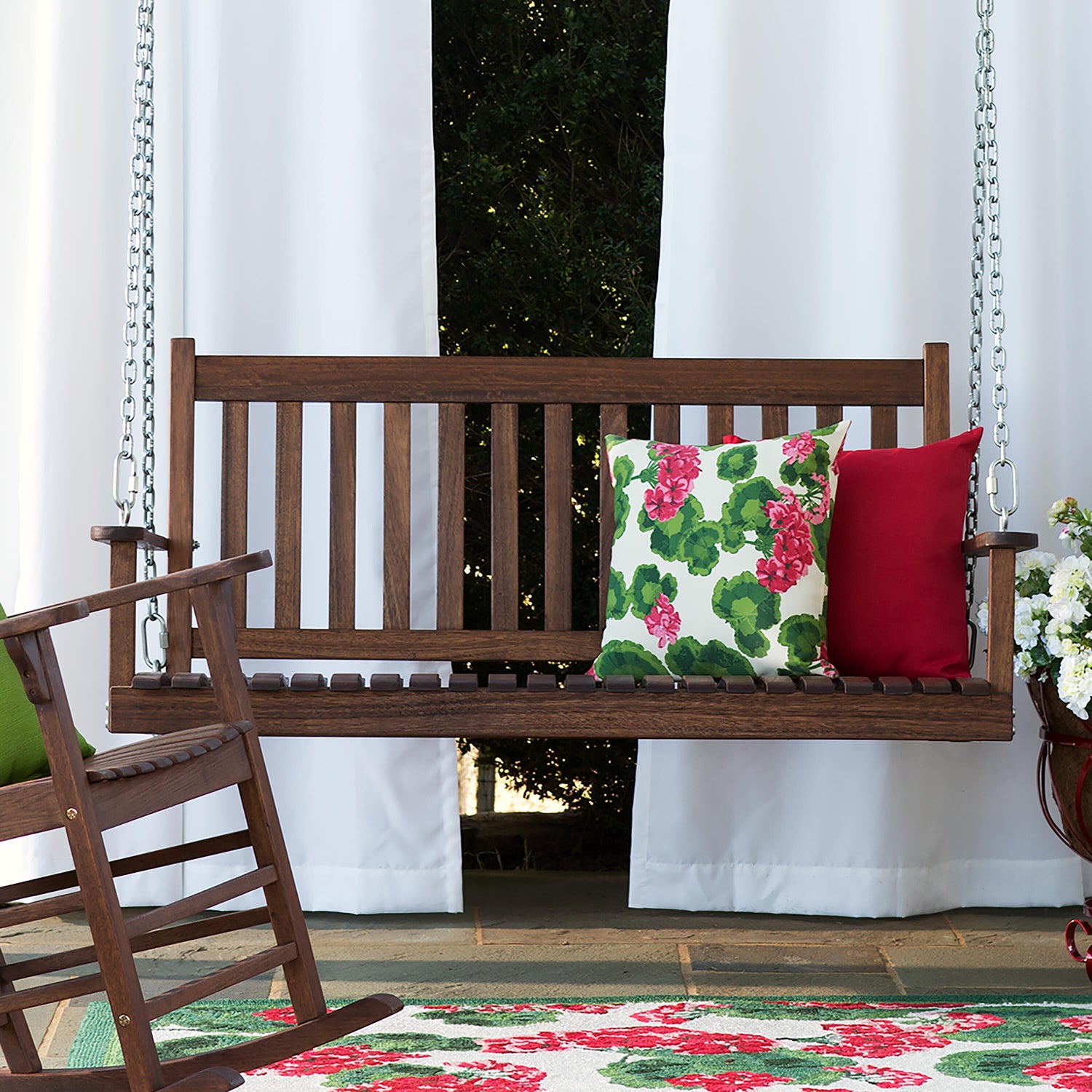 Get in the swing of nicer, warmer weather and relax on our updated Slatted Eucalyptus Wood Porch Swing.