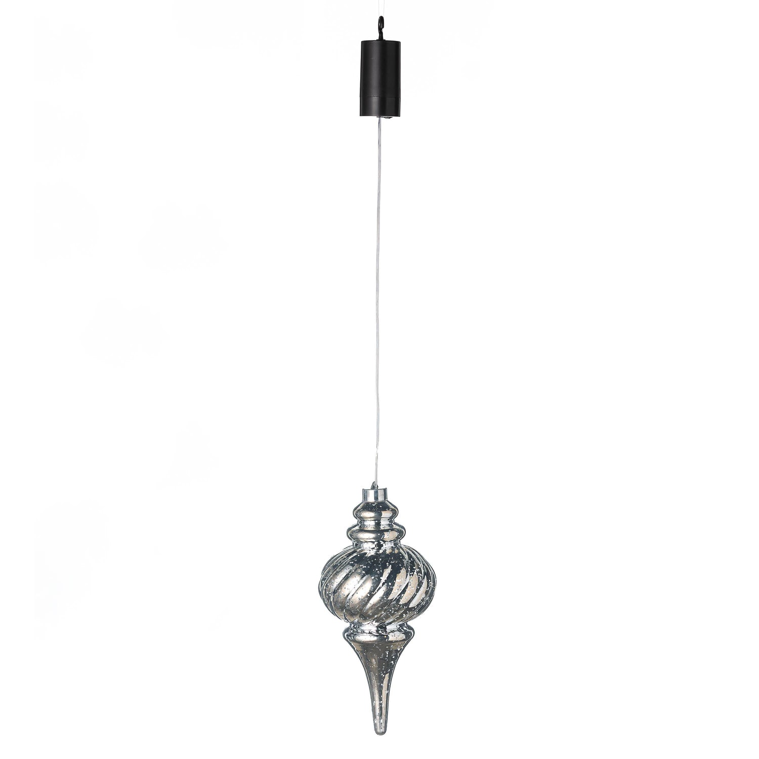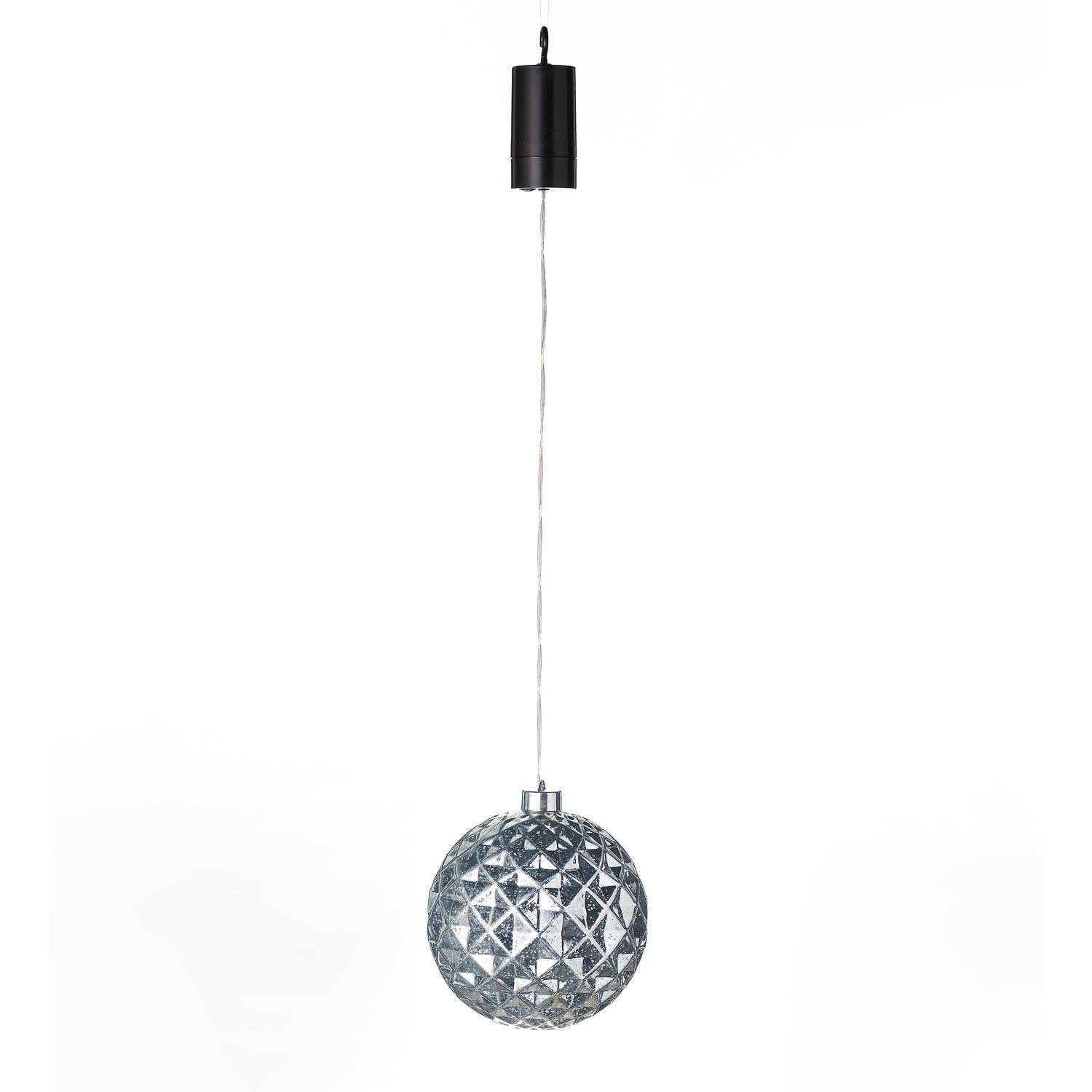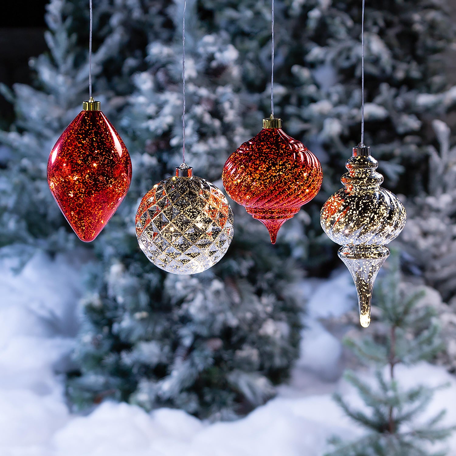 Painted to resemble mercury glass, these heavy-duty plastic ornaments have an internal string of LED chasing lights for a dazzling effect after dark. Shatterproof plastic is safe anywhere.