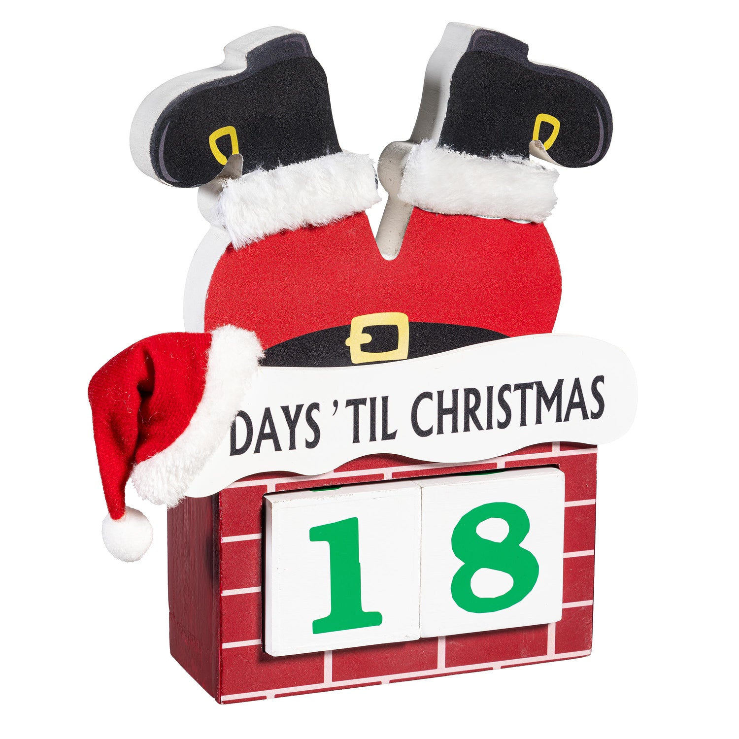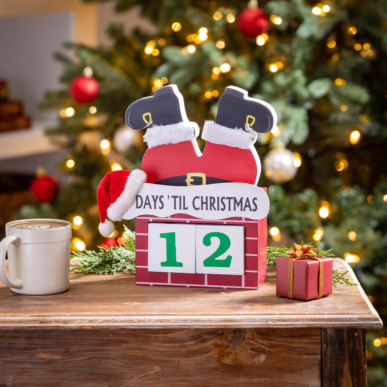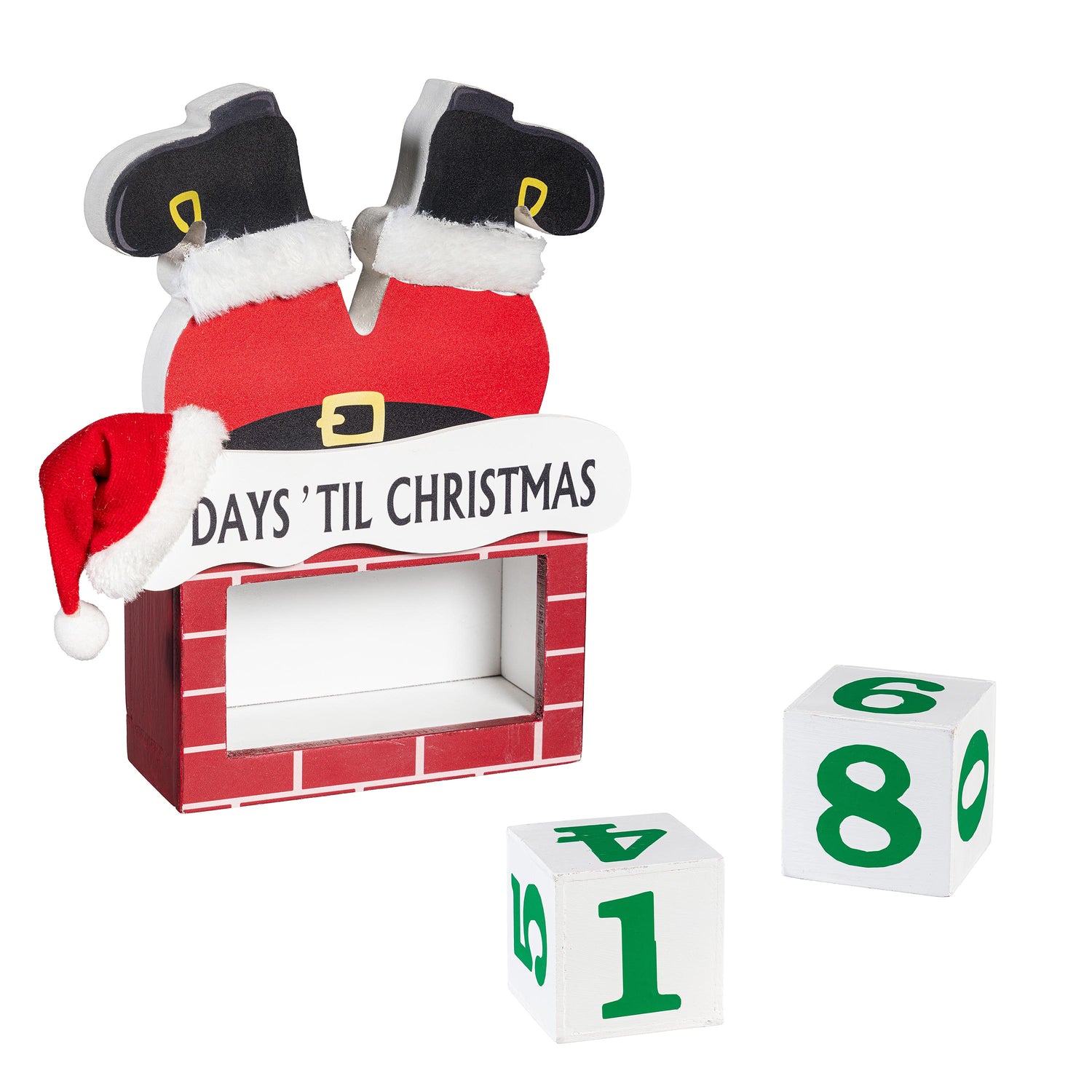Traditional Santa Table Décor Santa in Chimney Christmas Countdown Wood, 10"H